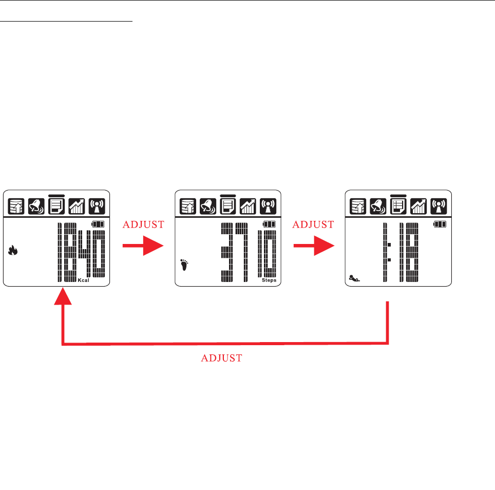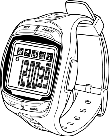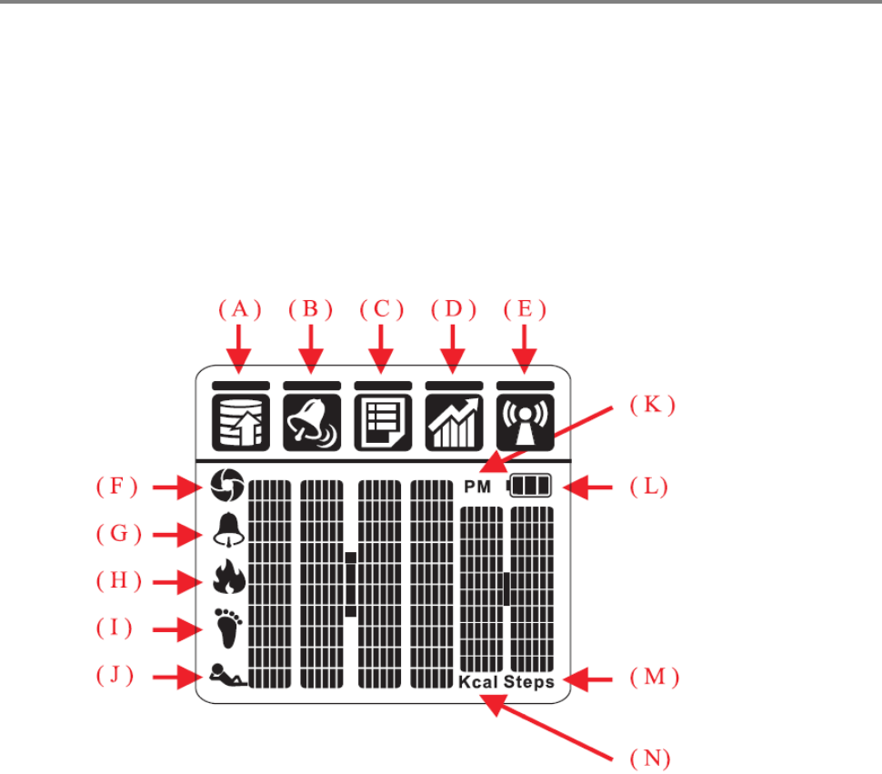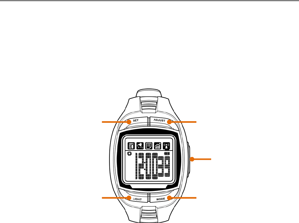 The Fitness Track has six operating modes: time display, activity recording, alarm mode,
