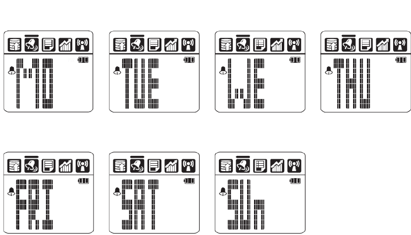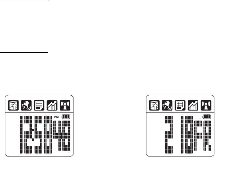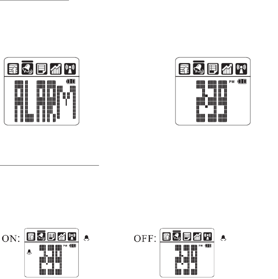 ● Alarm mode: Enables or disables alarm function; allows the user to set the time and