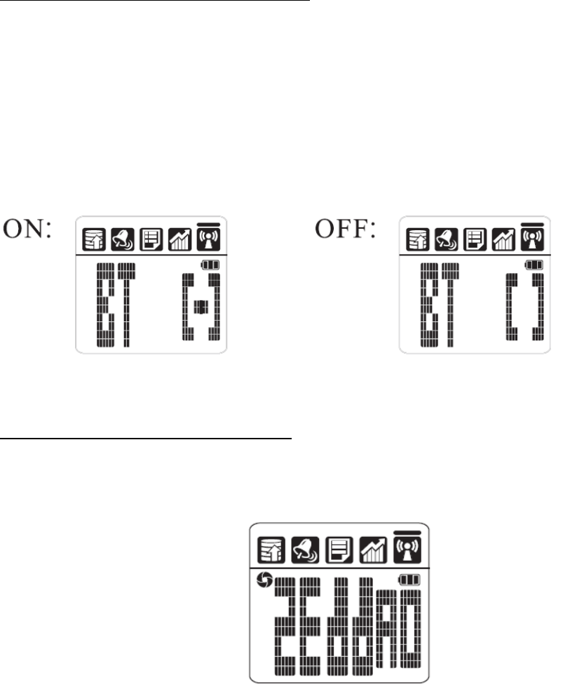 ● Data transfer mode: Enables or disables Bluetooth connection; displays the Bluetooth