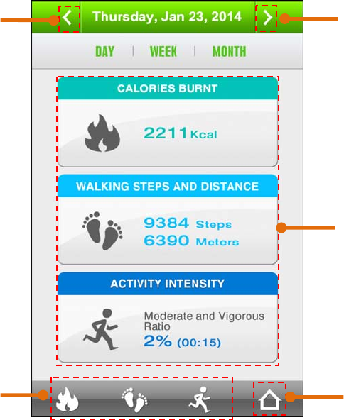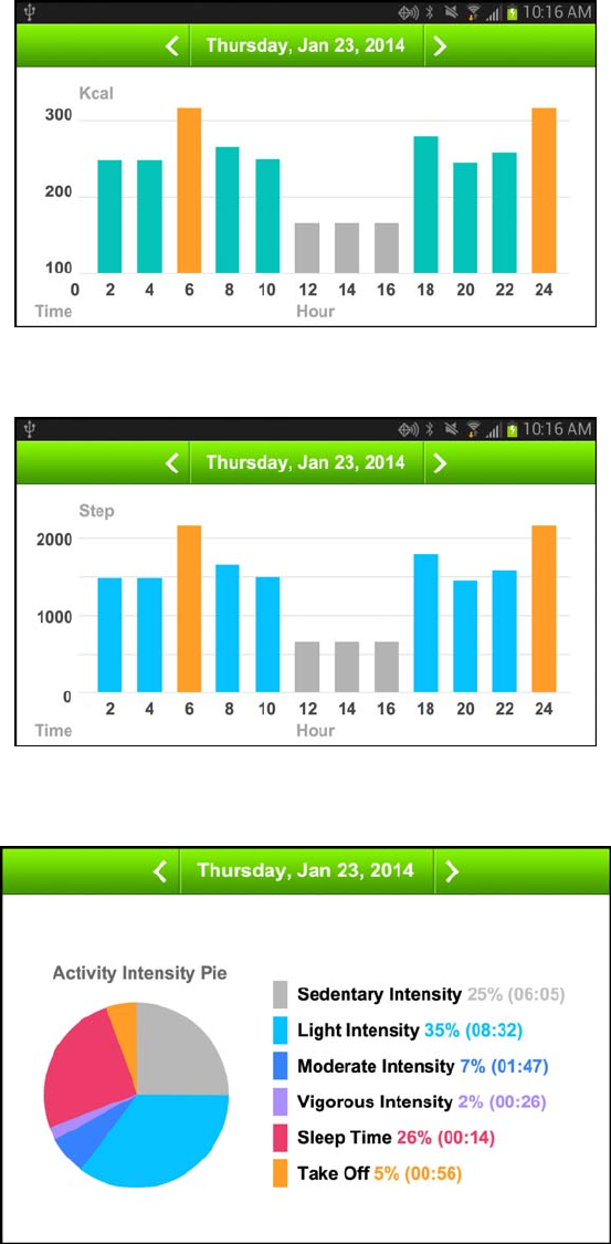 • Activity Intensity: the analyzed data of the selected date is shown in a pie chart.