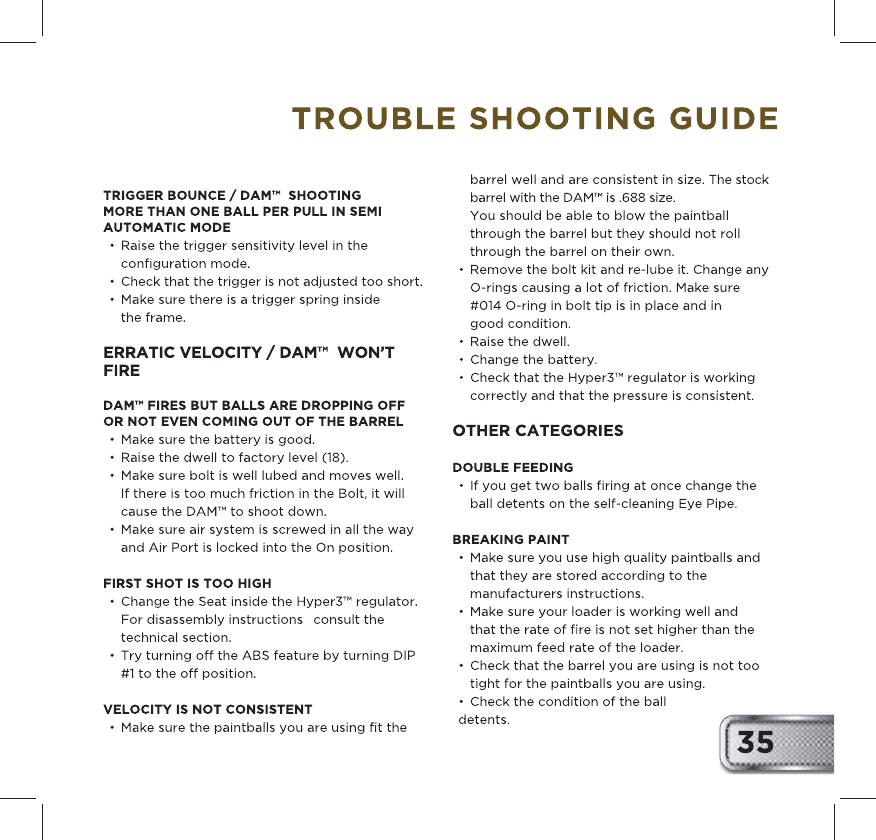 paintball at the next trigger pull. Keep your DAM™ pointed away from