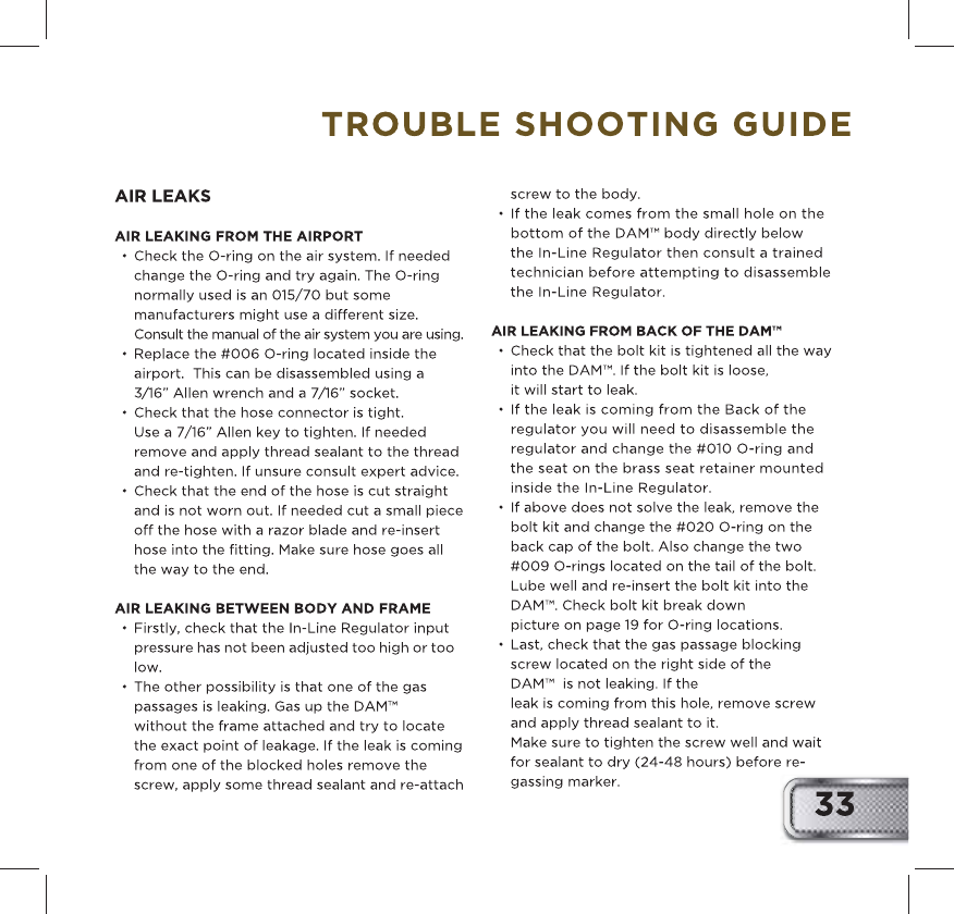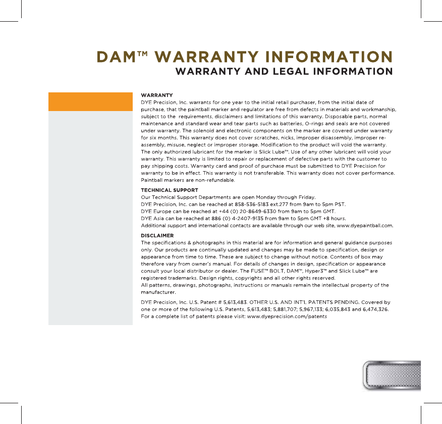 DYE PRECISION, INC. Marker DAM 2013 DAM 1 MANUAL FCC 1008