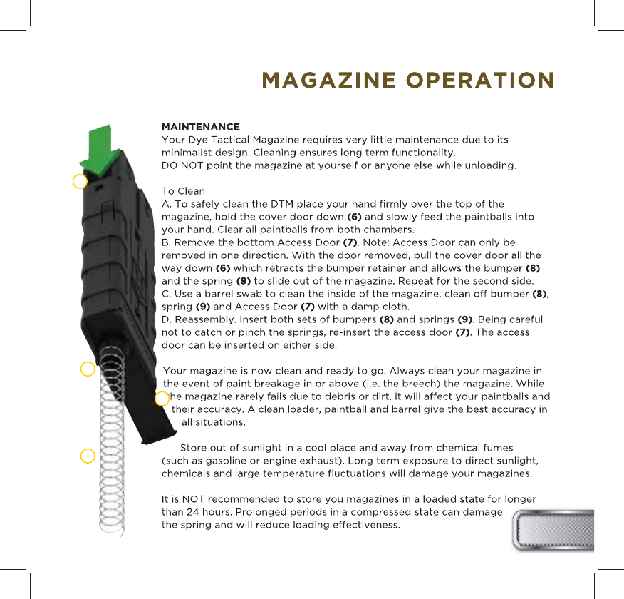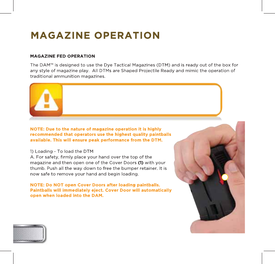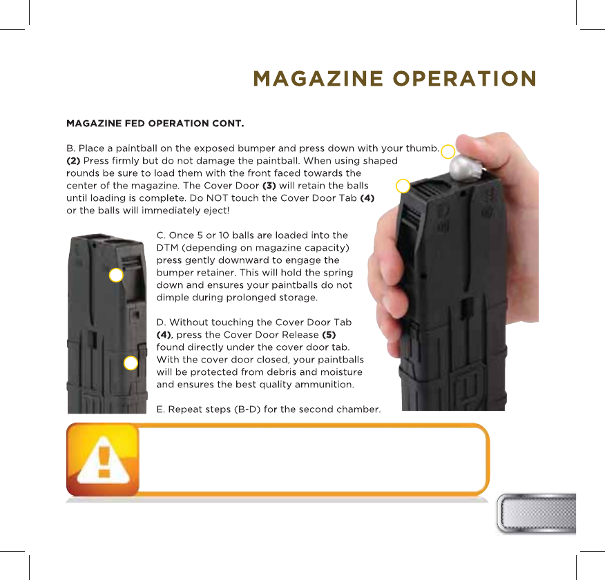 WARNING: Loaded magazines will eject paintballs as soon as the