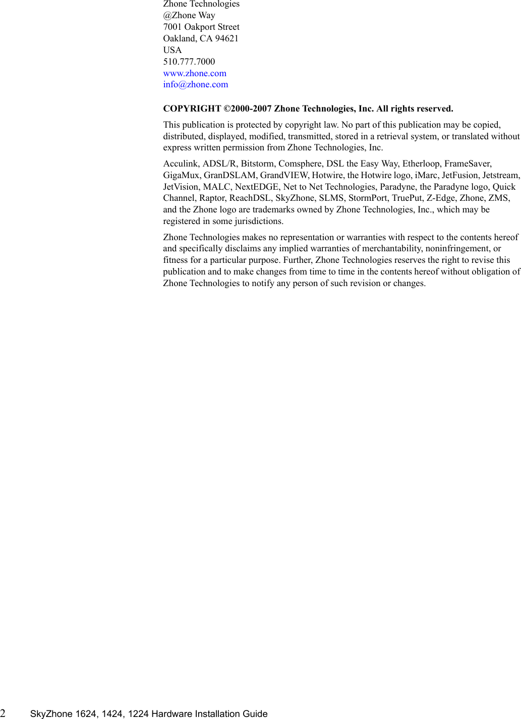 Zhone Technologies, Inc. 802.11b/g WIFI ACCESS POINT SkyZhone