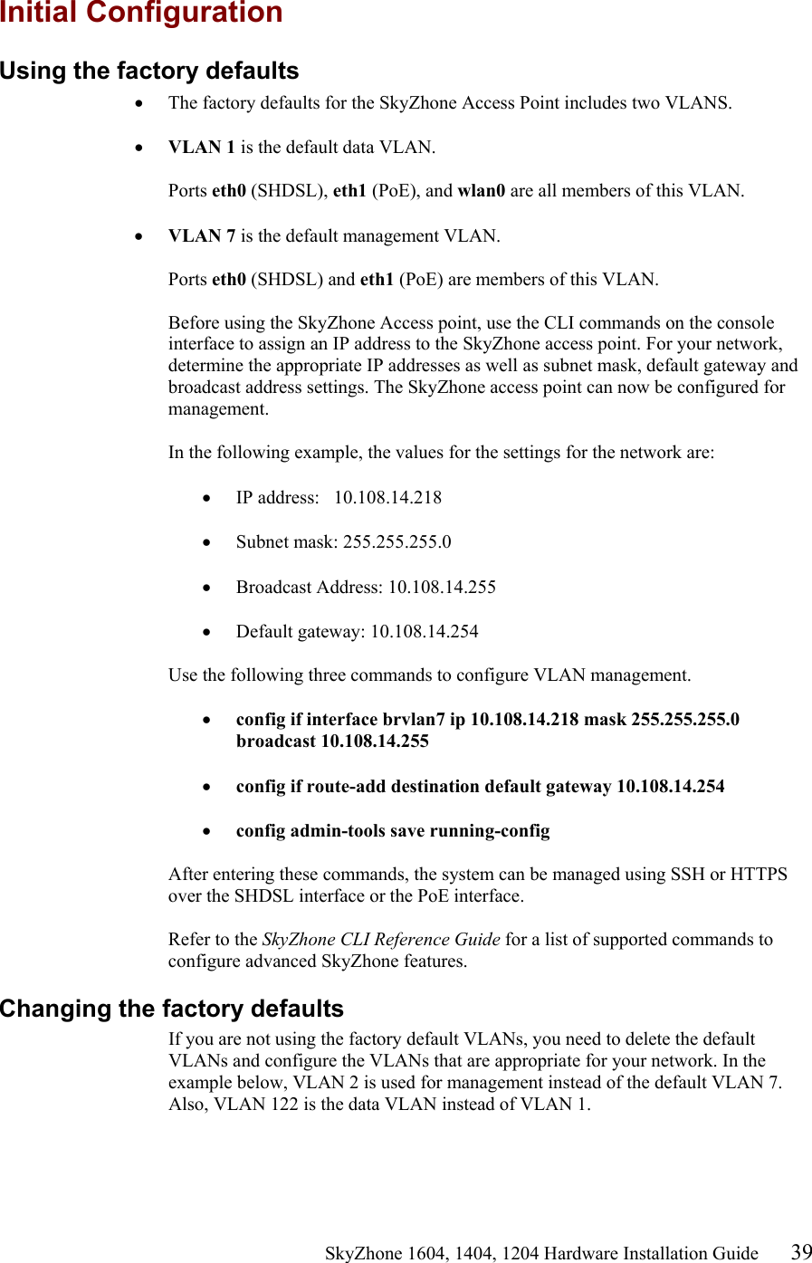 ![8 SkyZhone 1604, 1404, 1204 Hardware Install Guide Typographical conventions The following typographical styles are used in this guide to represent specific types of information. Bold Used for names of buttons, dialog boxes, icons, menus, profiles when placed in body text, and property pages (or sheets). Also used for commands, options, parameters in body text, and user input in body text. Fixed Used in code examples for computer output, file names, path names, and the contents of online files or directories. Fixed Bold Used in code examples for text typed by users. Fixed Bold Italic Used in code examples for variable text typed by users. Italic Used for book titles, chapter titles, file path names, notes in body text requiring special attention, section titles, emphasized terms, and variables. PLAIN UPPER CASE Used for environment variables. Command Syntax Brackets [ ] indicate optional syntax. Vertical bar | indicates the OR symbol. Related documentation Refer to the following publication for additional information: SkyZhone CLI Reference Guide explains how to use the Zhone command line interface (CLI) and describes the system commands and parameters. SkyZhone WEB Configuration Tool User Guide explains how to configure and manage SkyZhone using the Web interface. Refer to the release notes for software installation information and for changes in features and functionality of the product, if any. Acronyms The following acronyms are related to Zhone products and may appear throughout this manual: Table 1: Acronyms and their descriptions Acronym Description ADSL Asymmetrical Digital Subscriber Line AP Access Point ACS Auto Configuration Server DHCP Dynamic Host Configuration Protocol DSL Digital Subscriber Line EFM Ethernet in the First Mile](https://usermanual.wiki/DZS/SZ1624.USERS-MANUAL-2/User-Guide-890323-Page-8.png)