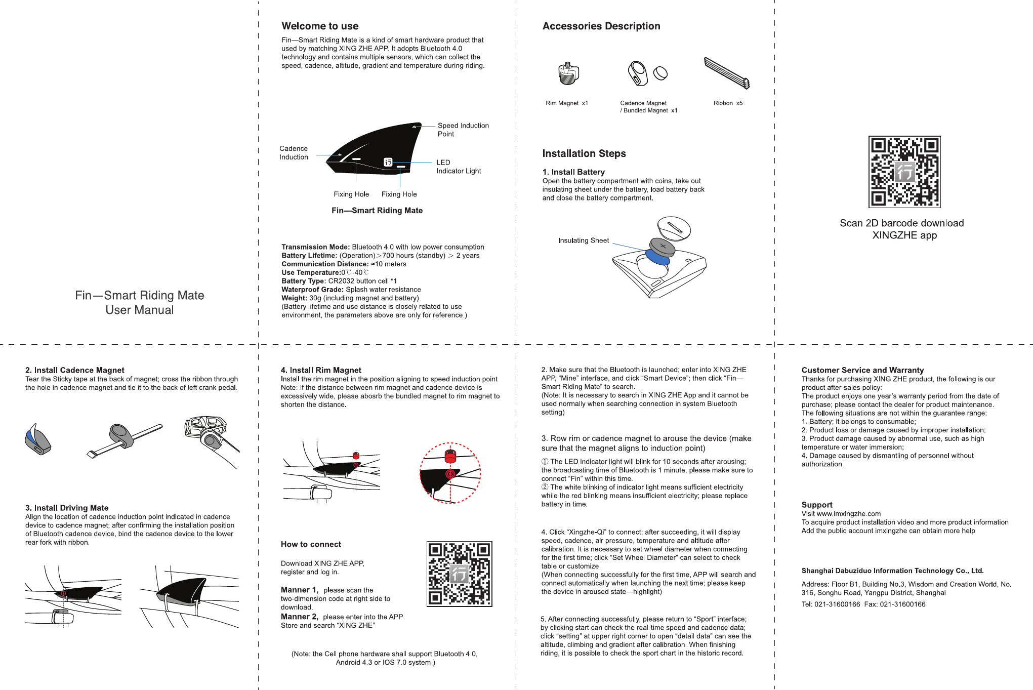 Shanghai Dabuziduo Information and Technology Co.,Ltd fin-smart cycling mate Users Manual