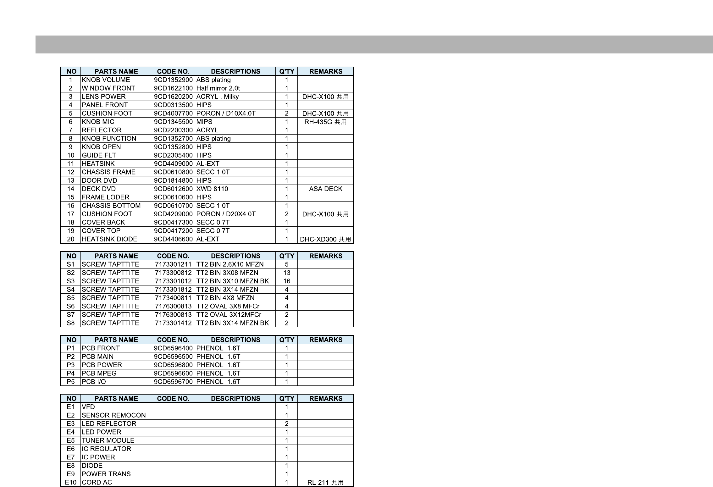 Daewoo Electronics Rd 400 Users Manual BOM_RD430X CE LPP(PSM)