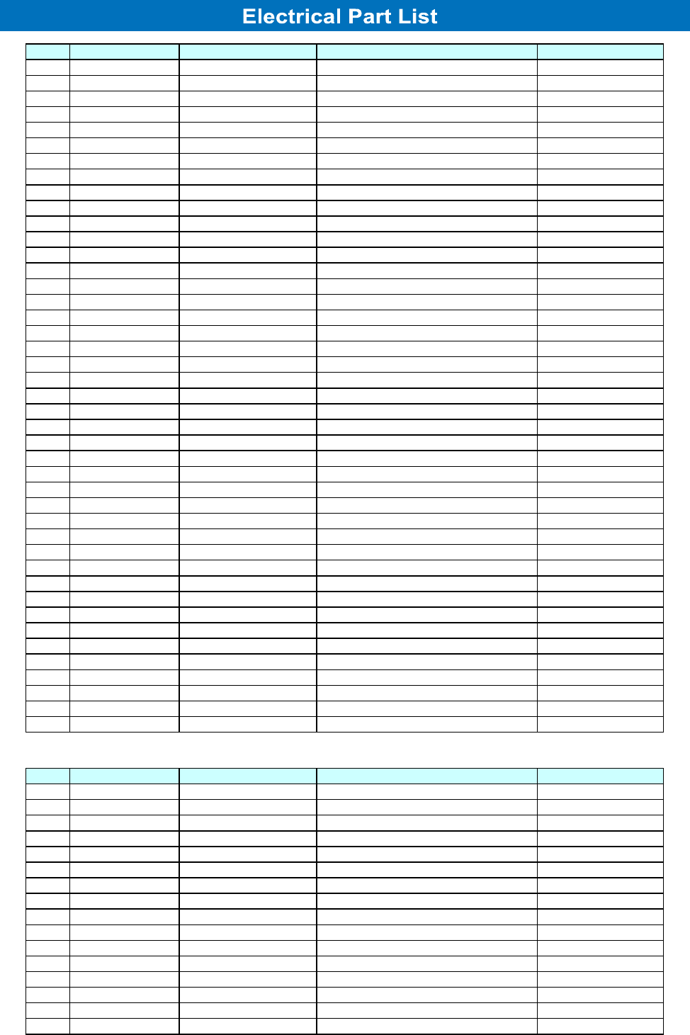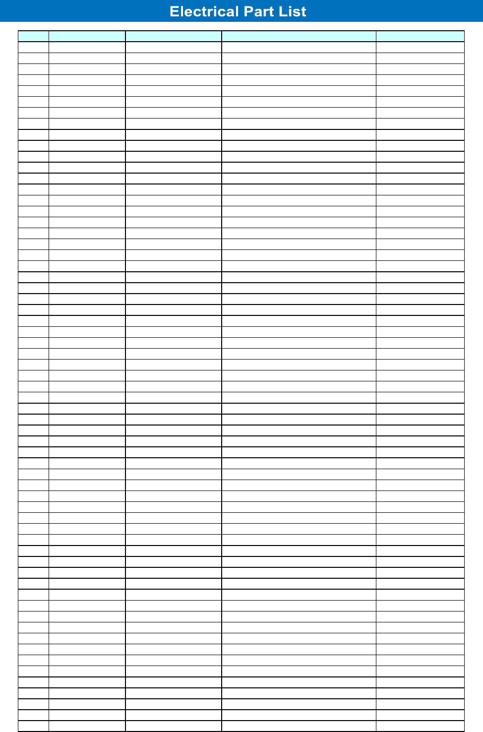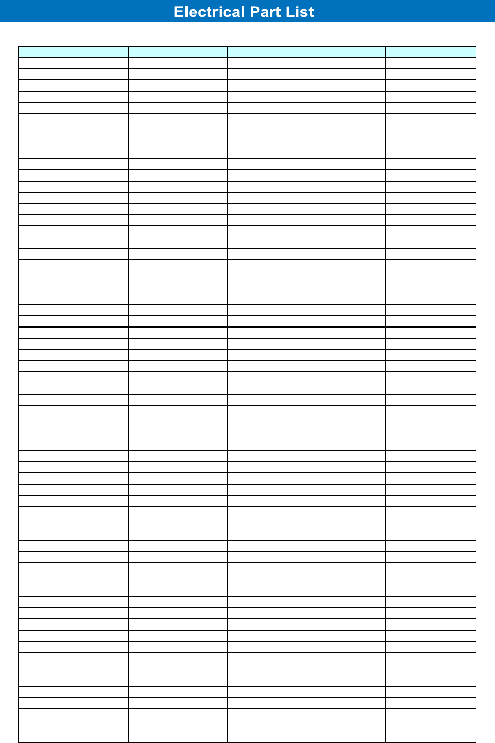 ELECTRICAL PARTS LIST