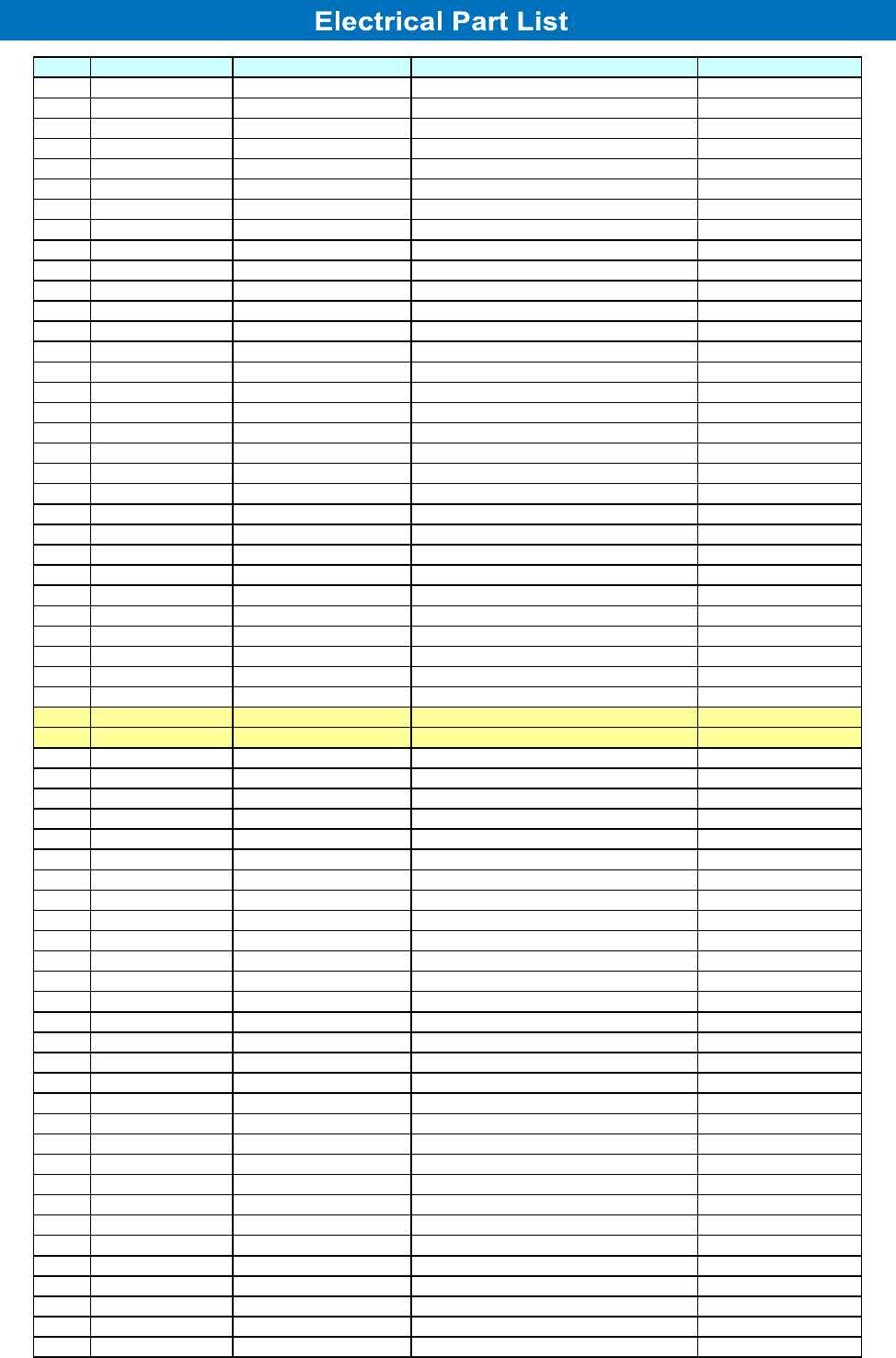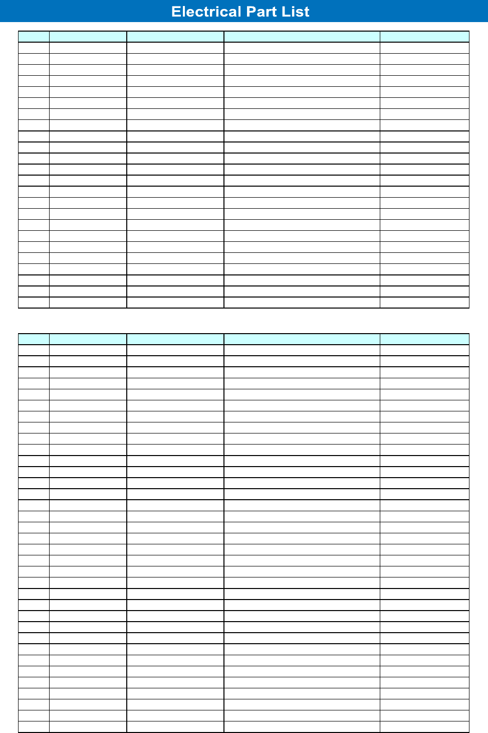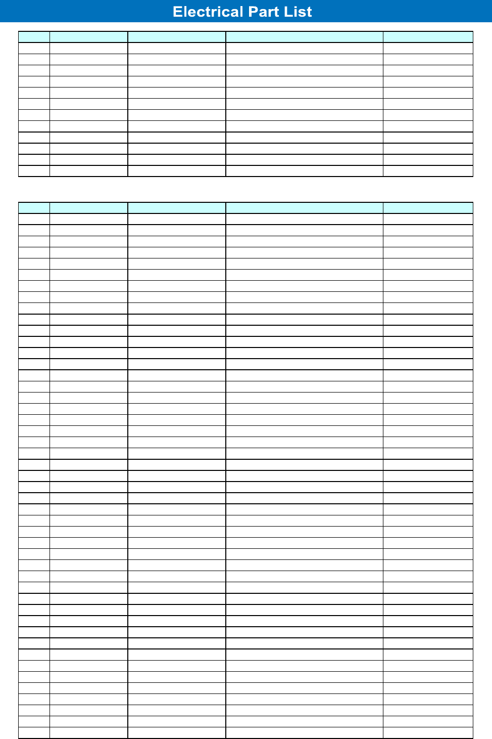 ELECTRICAL PARTS LIST