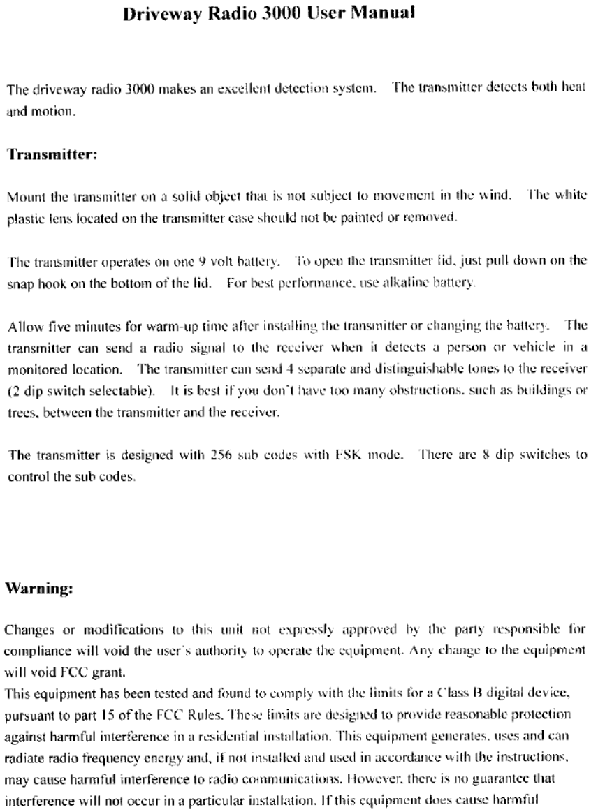 Dakota Alert 3000T Driveway Radio User Manual BACL modified
