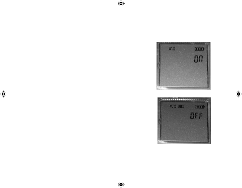 will be “ON” or “OFF” in the upper right section of the display. Use the right