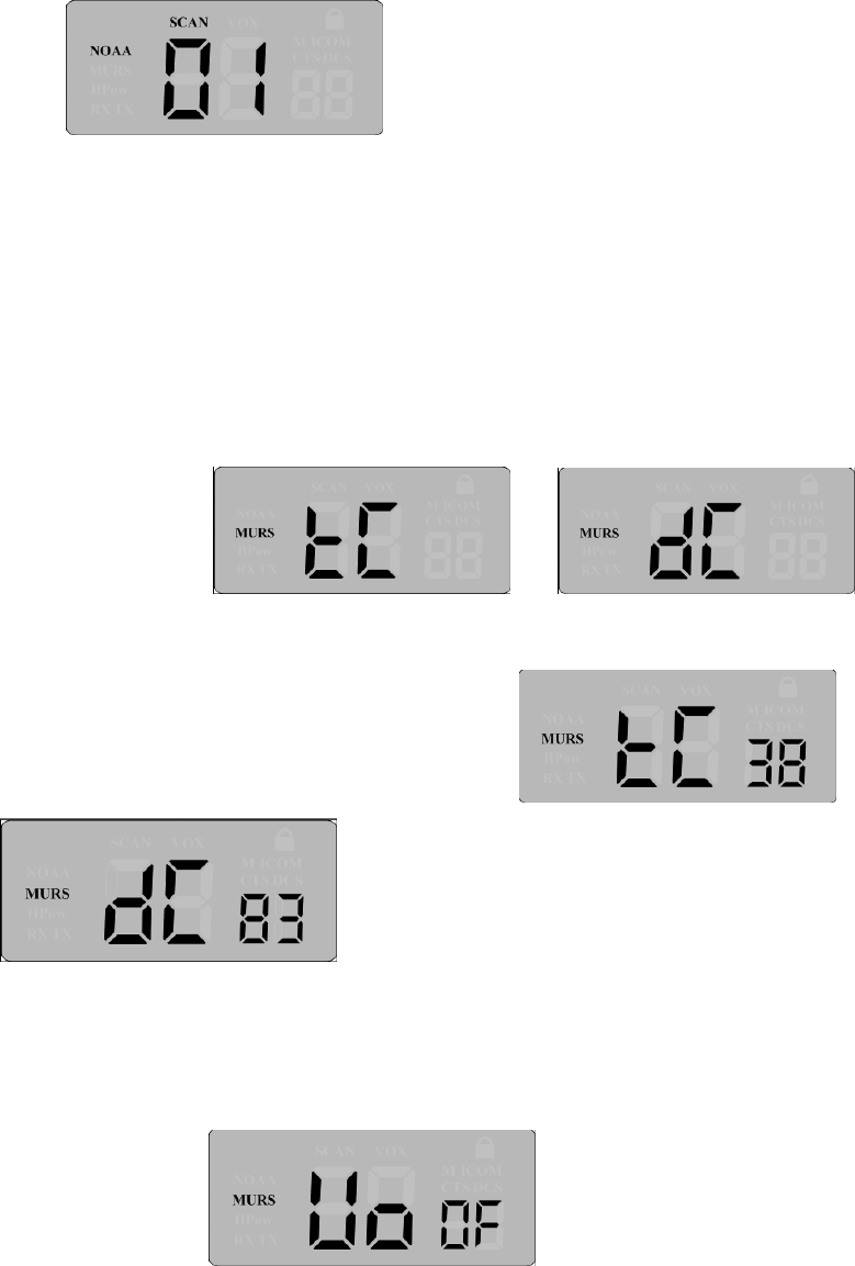 4. Press UP or DOWN to select tC(CTCSS) 0 to 38 or dC(CDCSS)0 to 83;
