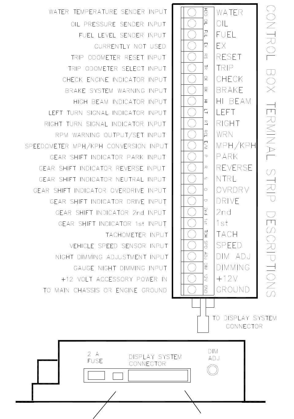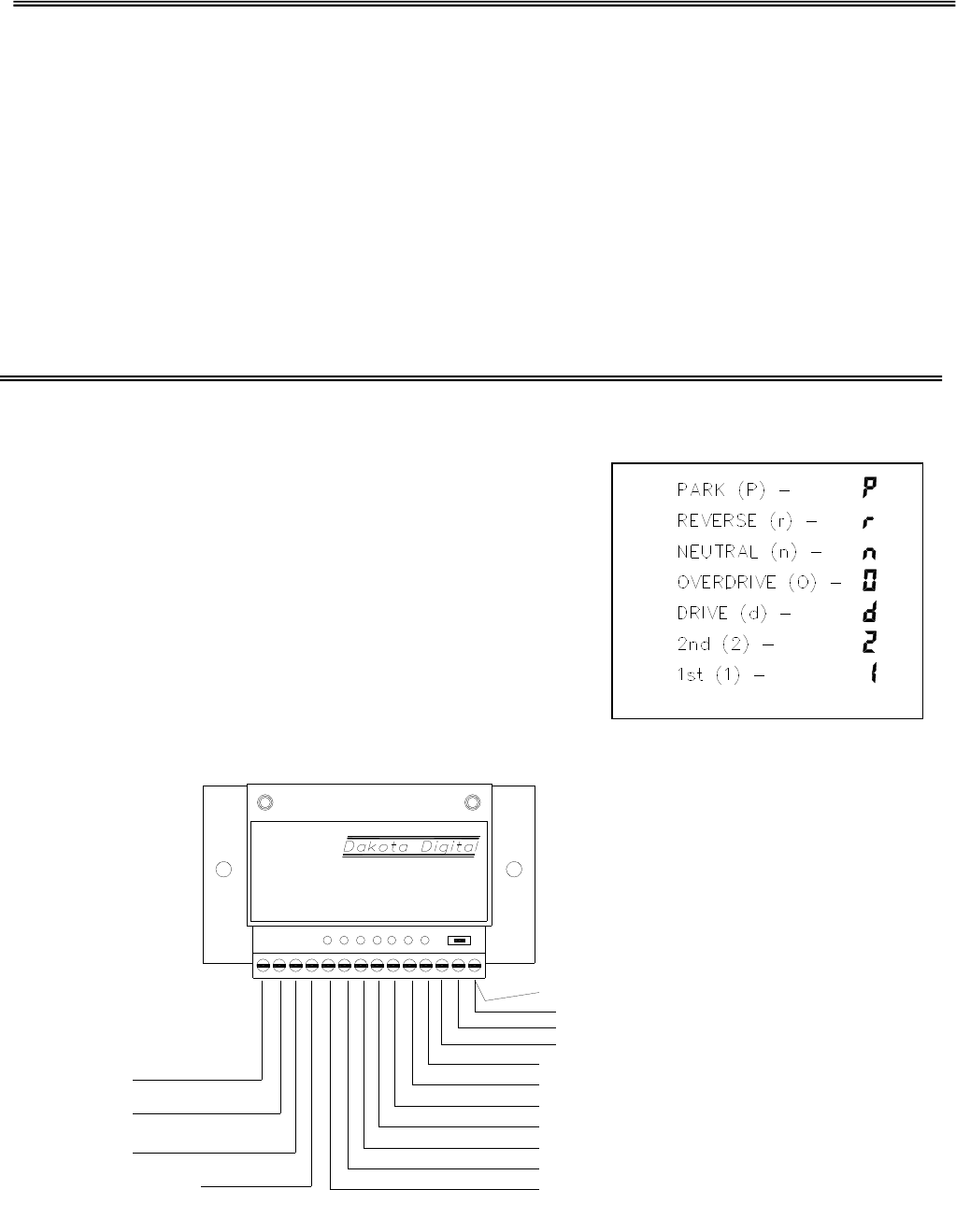The gear shift indicator The optional gear shift sending Connect the sending unit to the