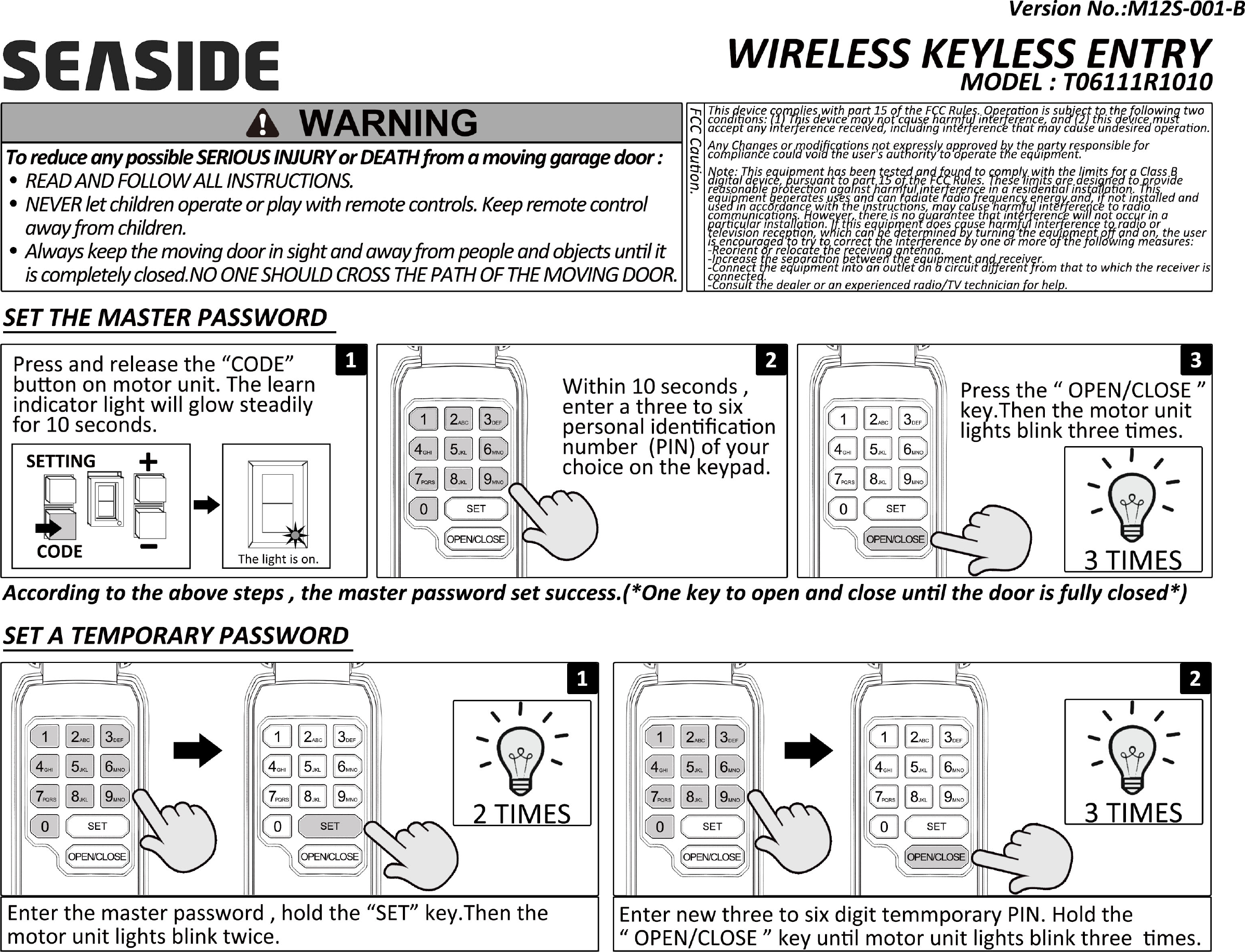 Dalian Seaside Door Controlling System M12S wireless keyless entry User Manual
