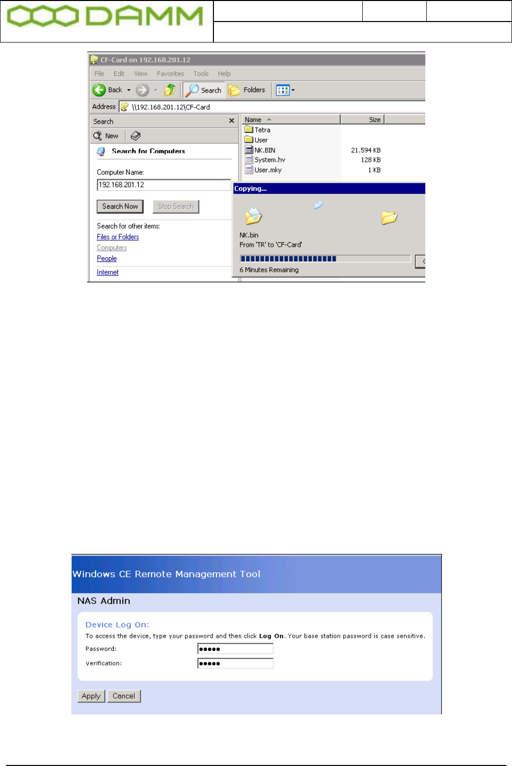 o Copy the file NK.bin from SB421 C:\tetra\PGM\TR to the CF-Card\TMP on BS421