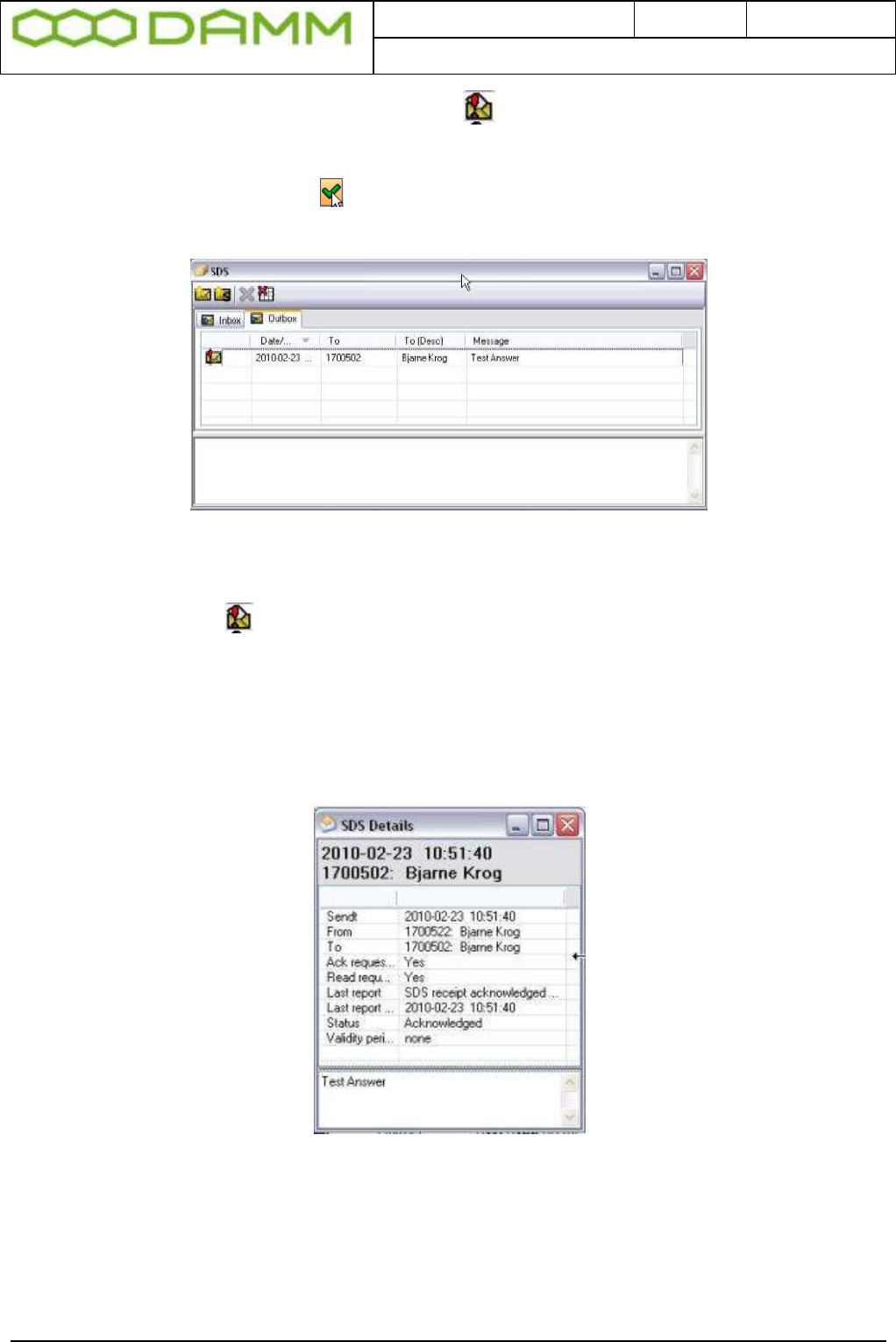 All outgoing SDS traffic from the Dispatcher are copied to the SDS Outbox, see Figure 3-73.