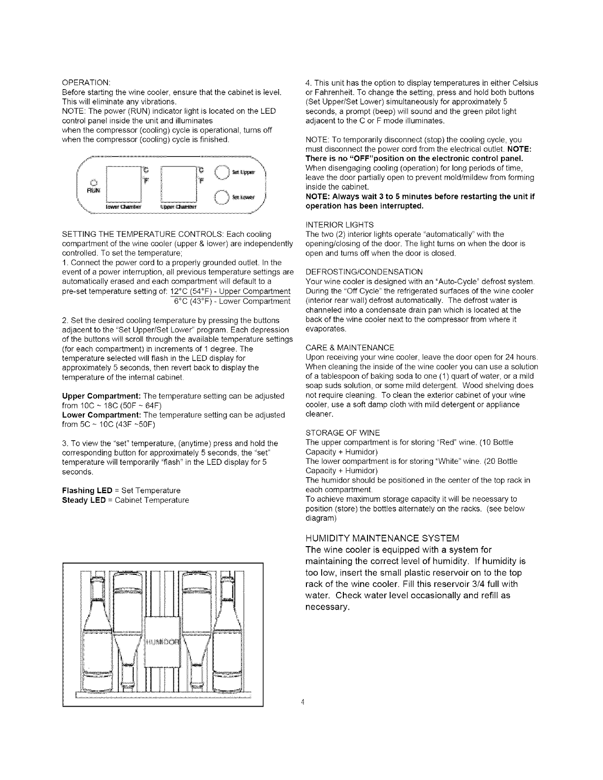 During the "Off Cycle" the refrigerated surfaces of the wine cooler