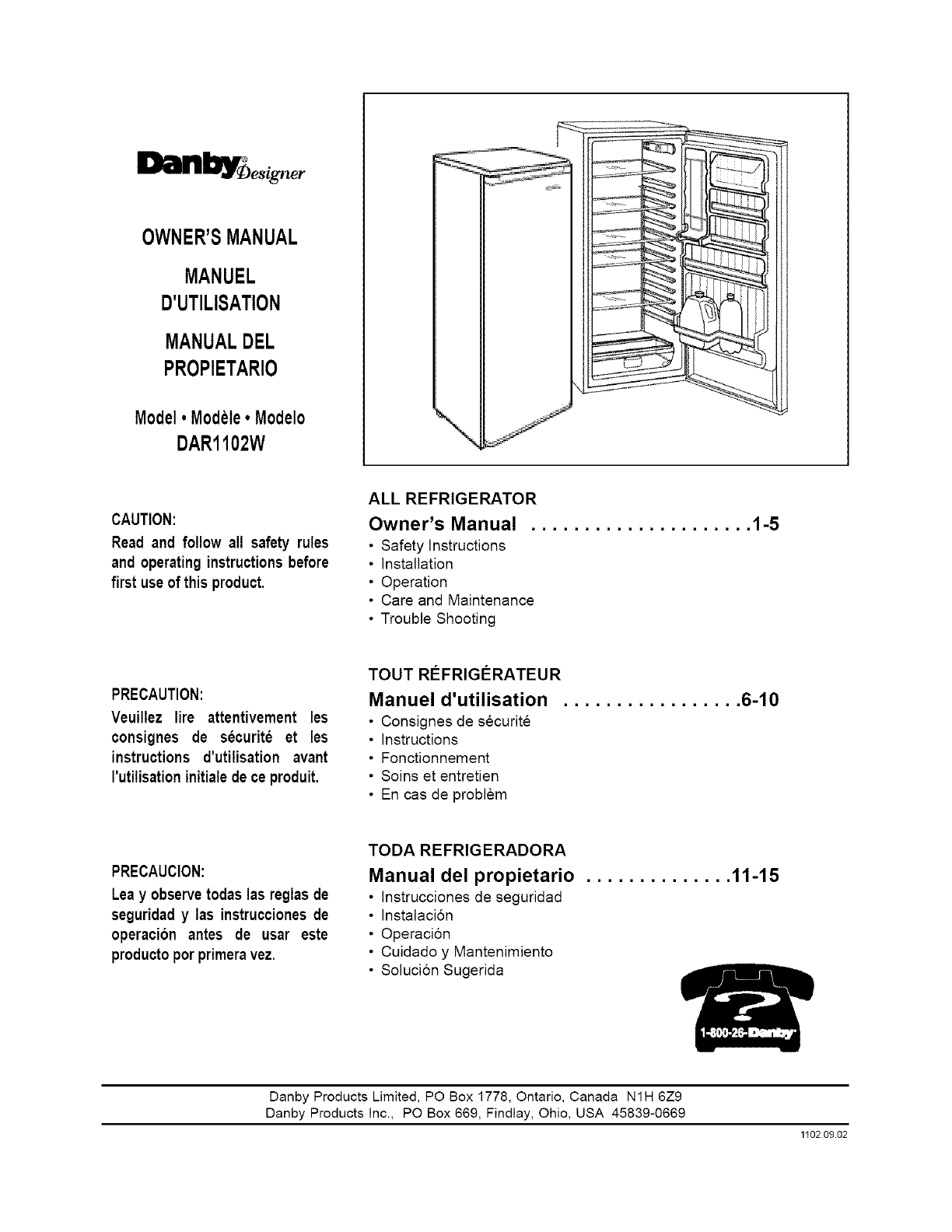 DAR1102W DAR1102W DANBY REFRIGERATOR - Manuals and Guides L0712161 View the owners manual for your DANBY REFRIGERATOR #DAR1102W. Home:Kitchen Appliance Parts:Danby Parts:Danby REFRIGERATOR Manual