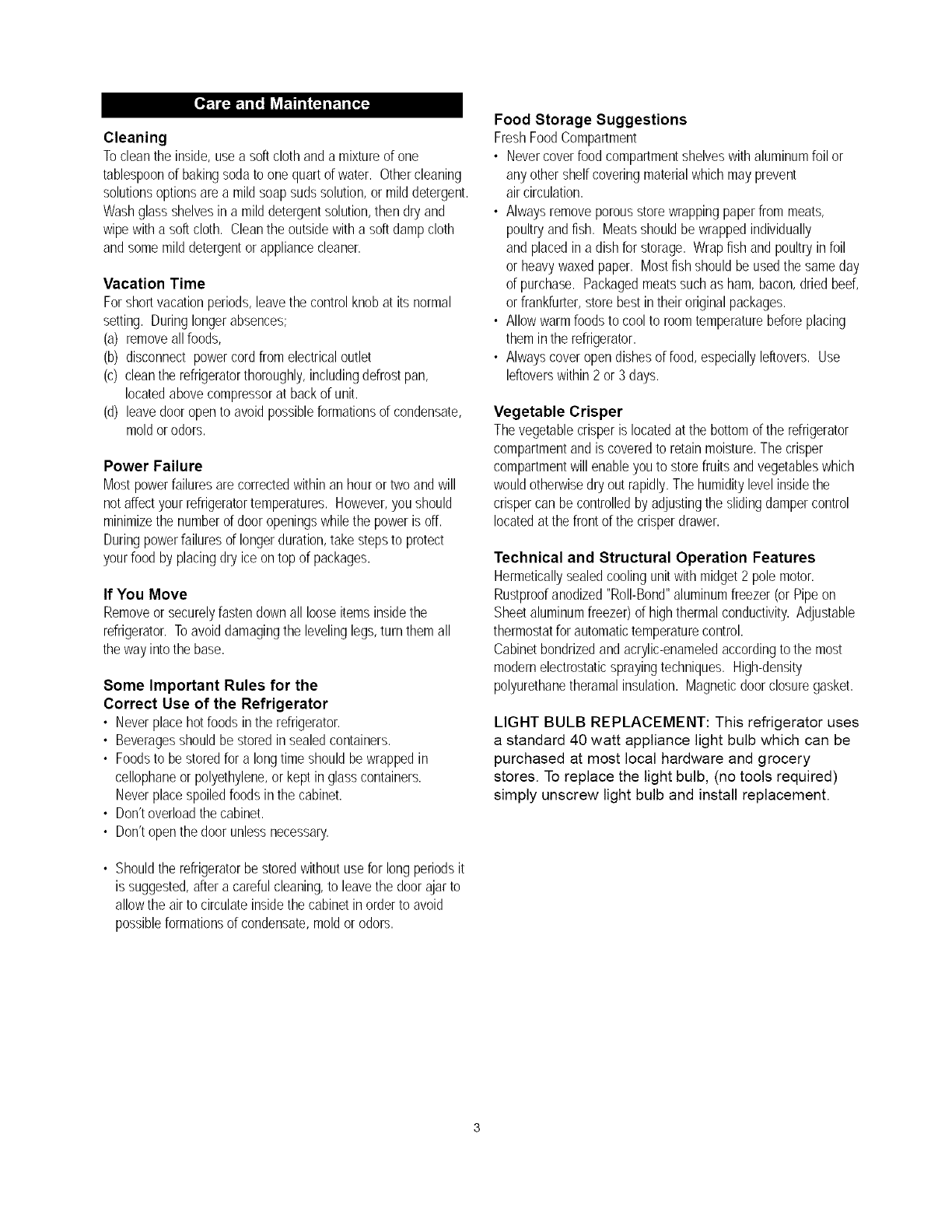 LIGHT BULB REPLACEMENT: This refrigerator uses