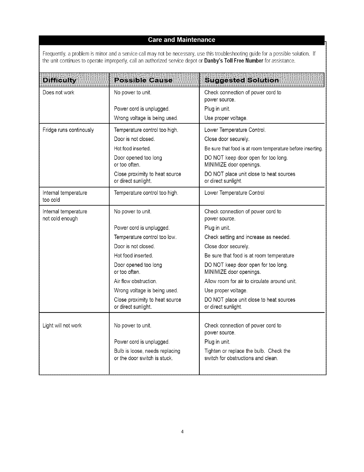 the unitcontinuesto operateimproperly,callanauthorizedservicedepotor Danby'sToll FreeNumberfor assistance.