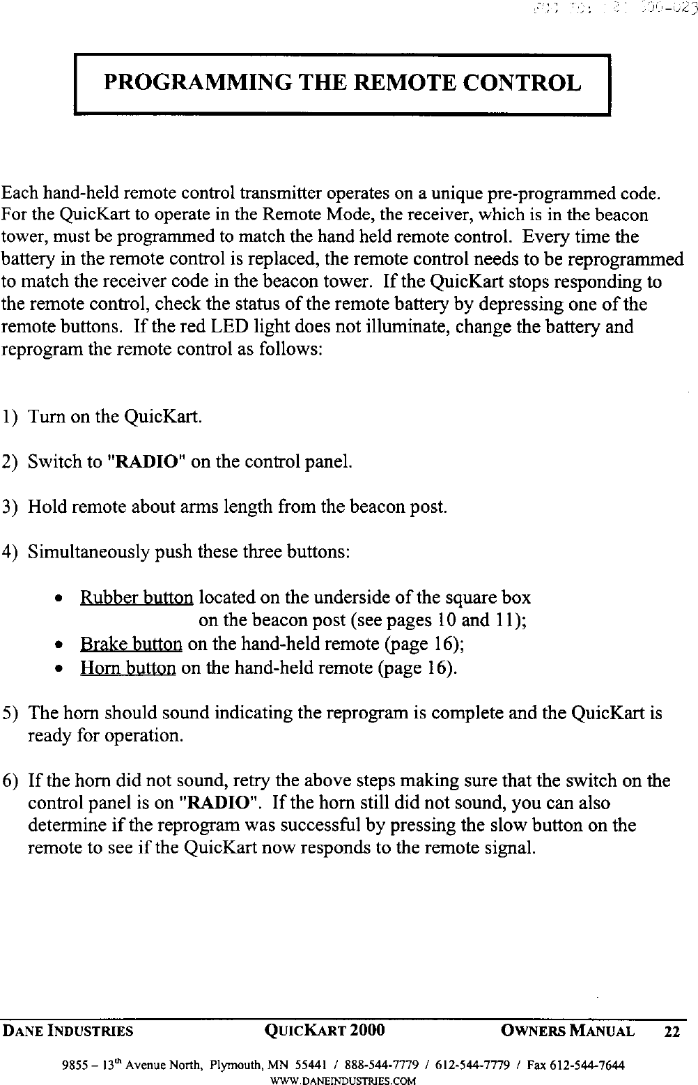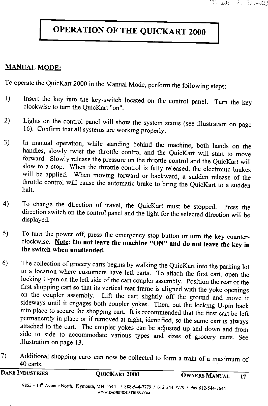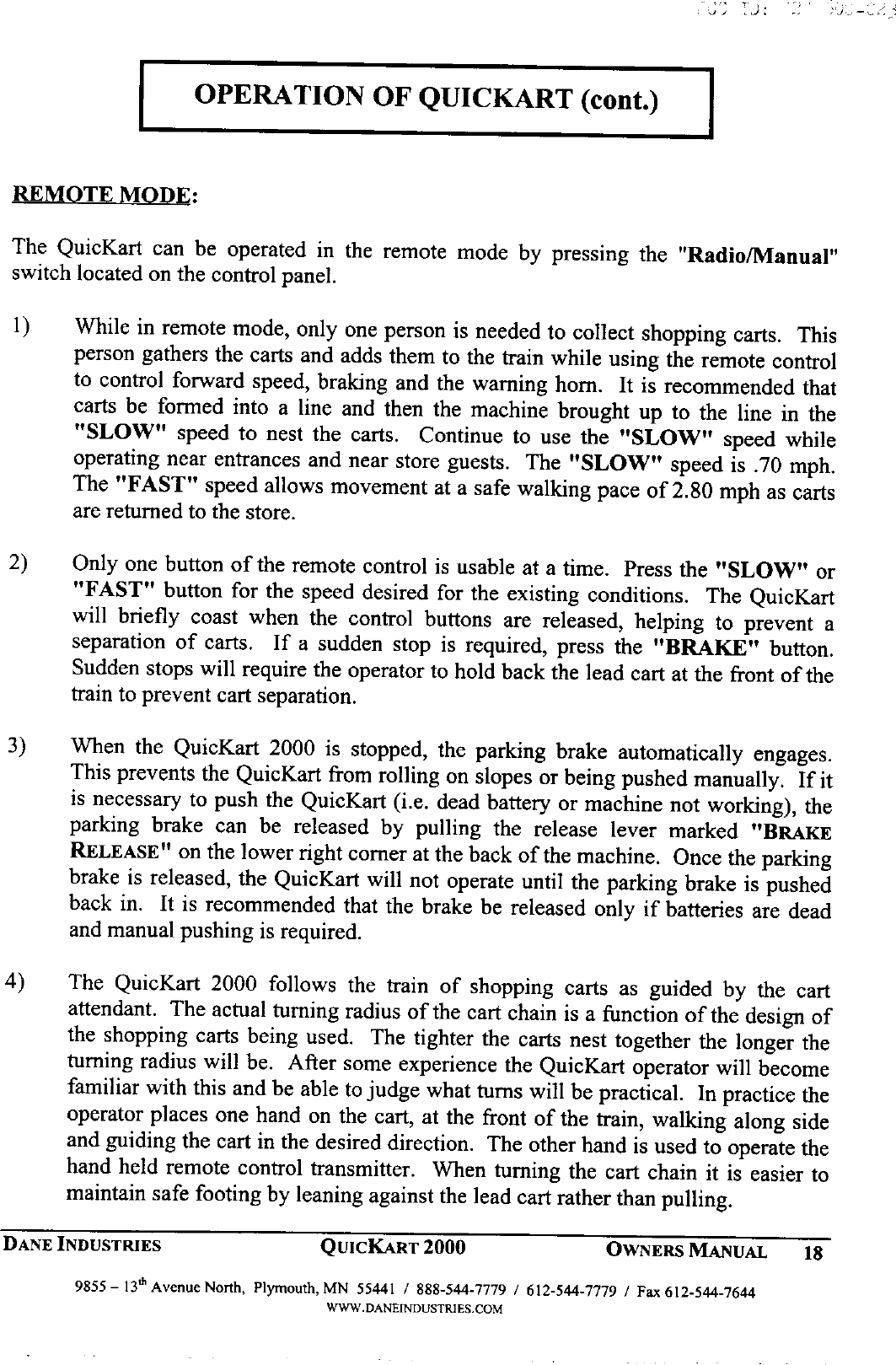 Dane Technologies 600-023 TX for Electric Shopping Cart User Manual 51507