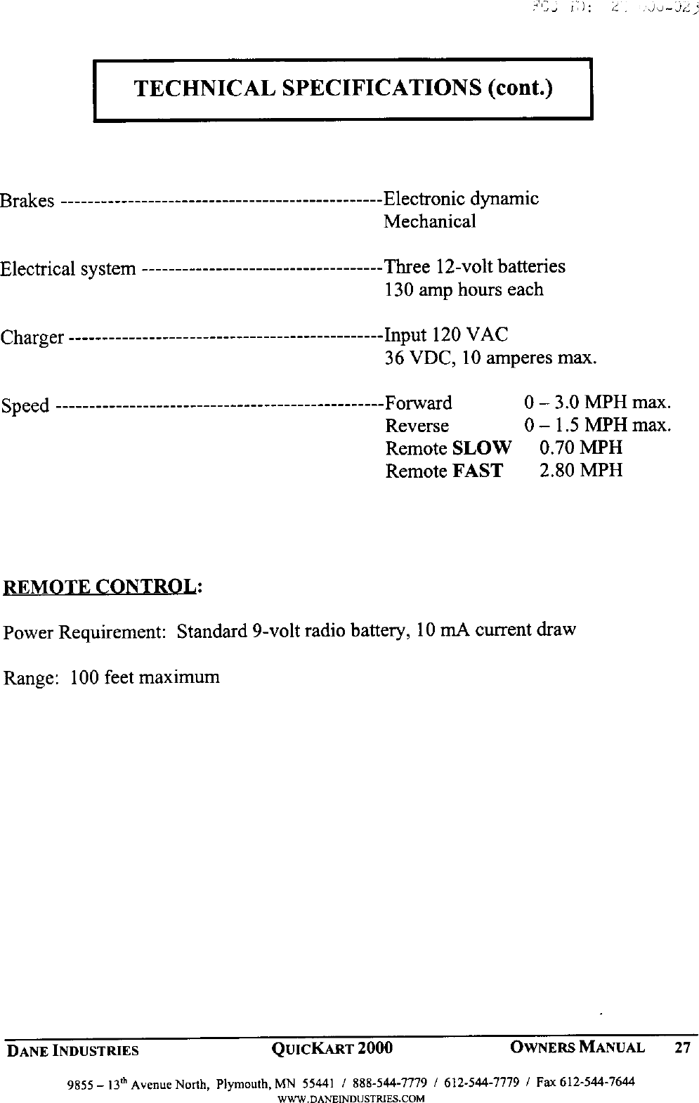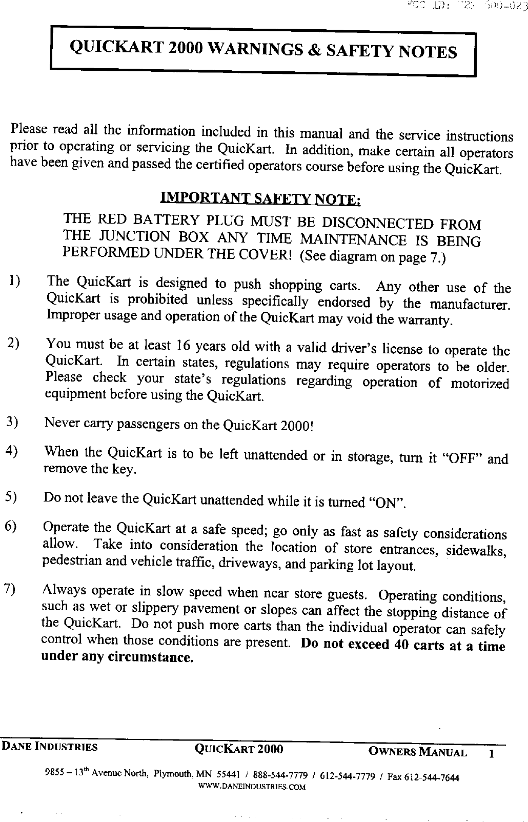 Dane Technologies, Inc. TX for Electric Shopping Cart 51507