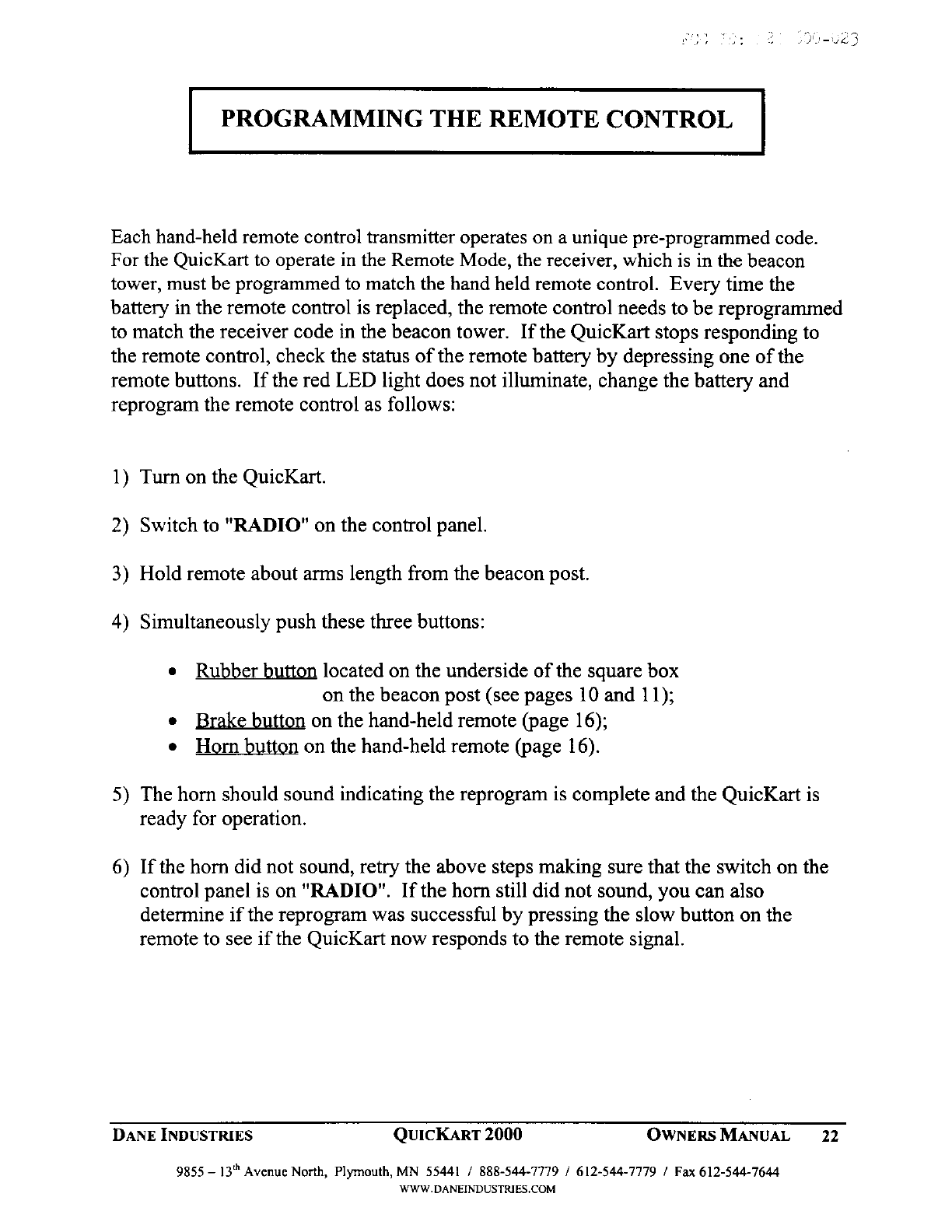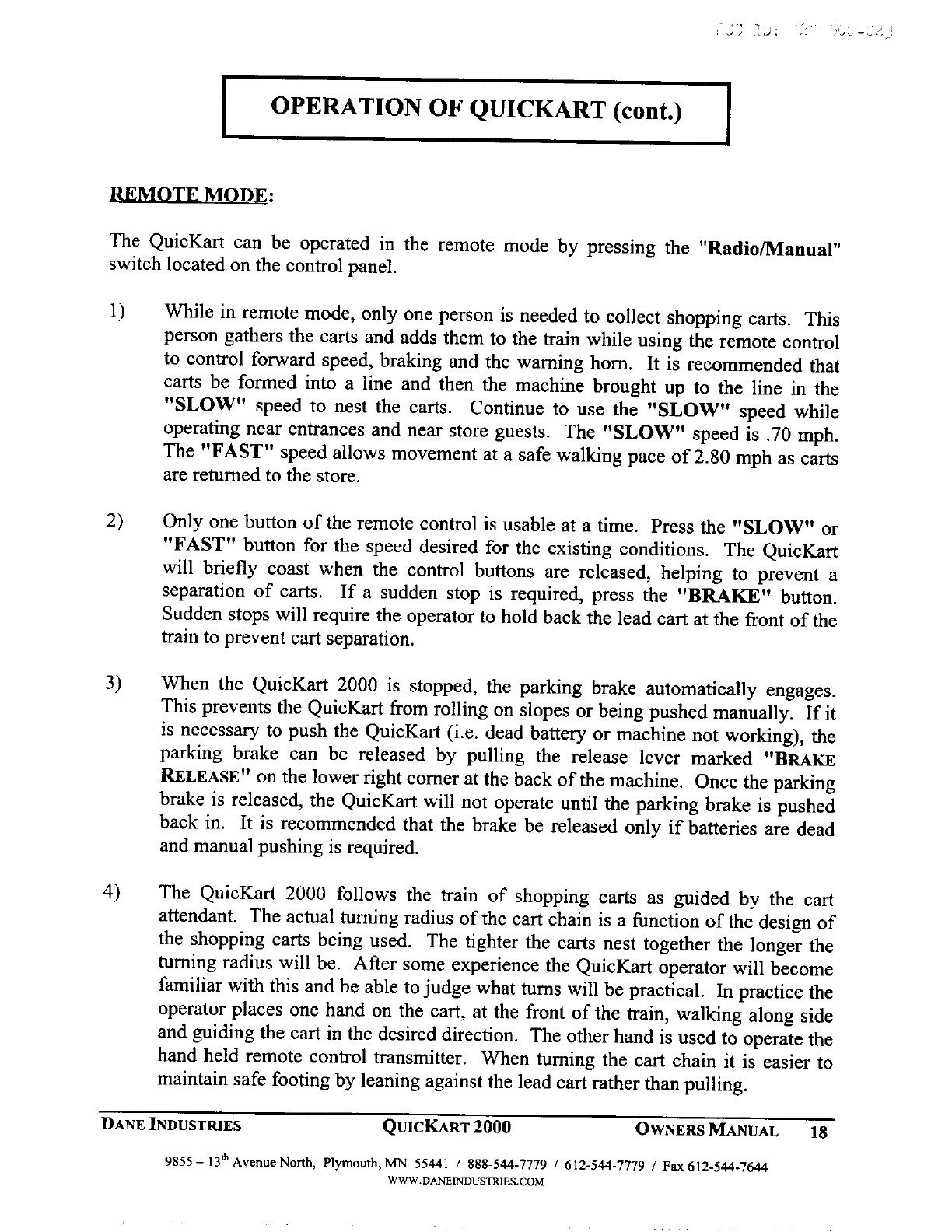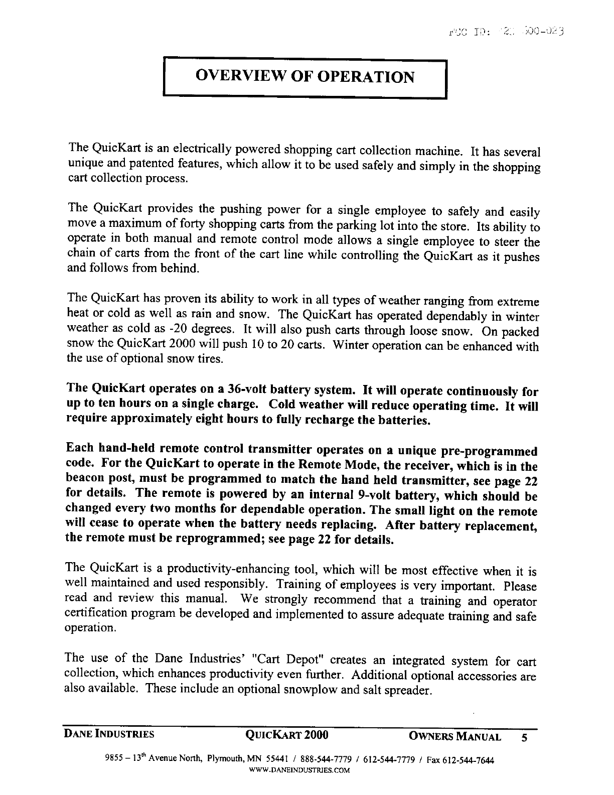 Dane Technologies 600-023 TX for Electric Shopping Cart User Manual 51507