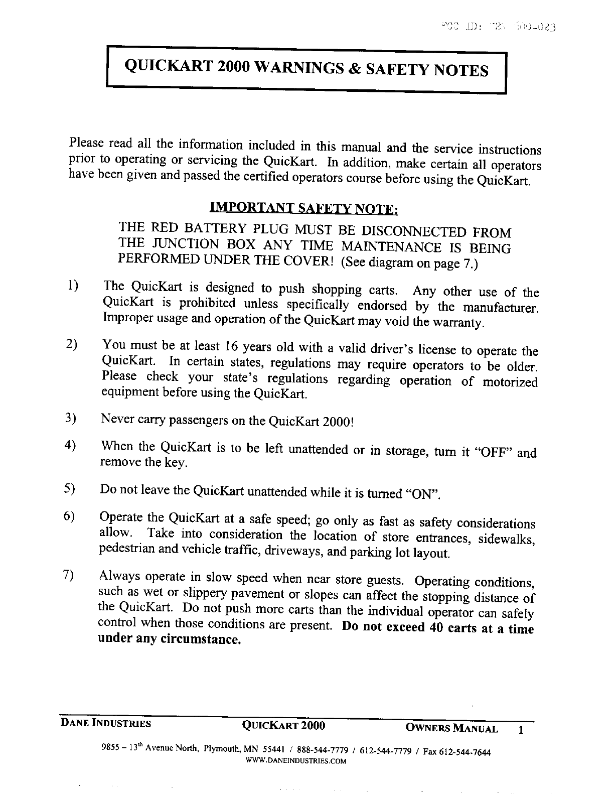 Dane Technologies, Inc. TX for Electric Shopping Cart 51507