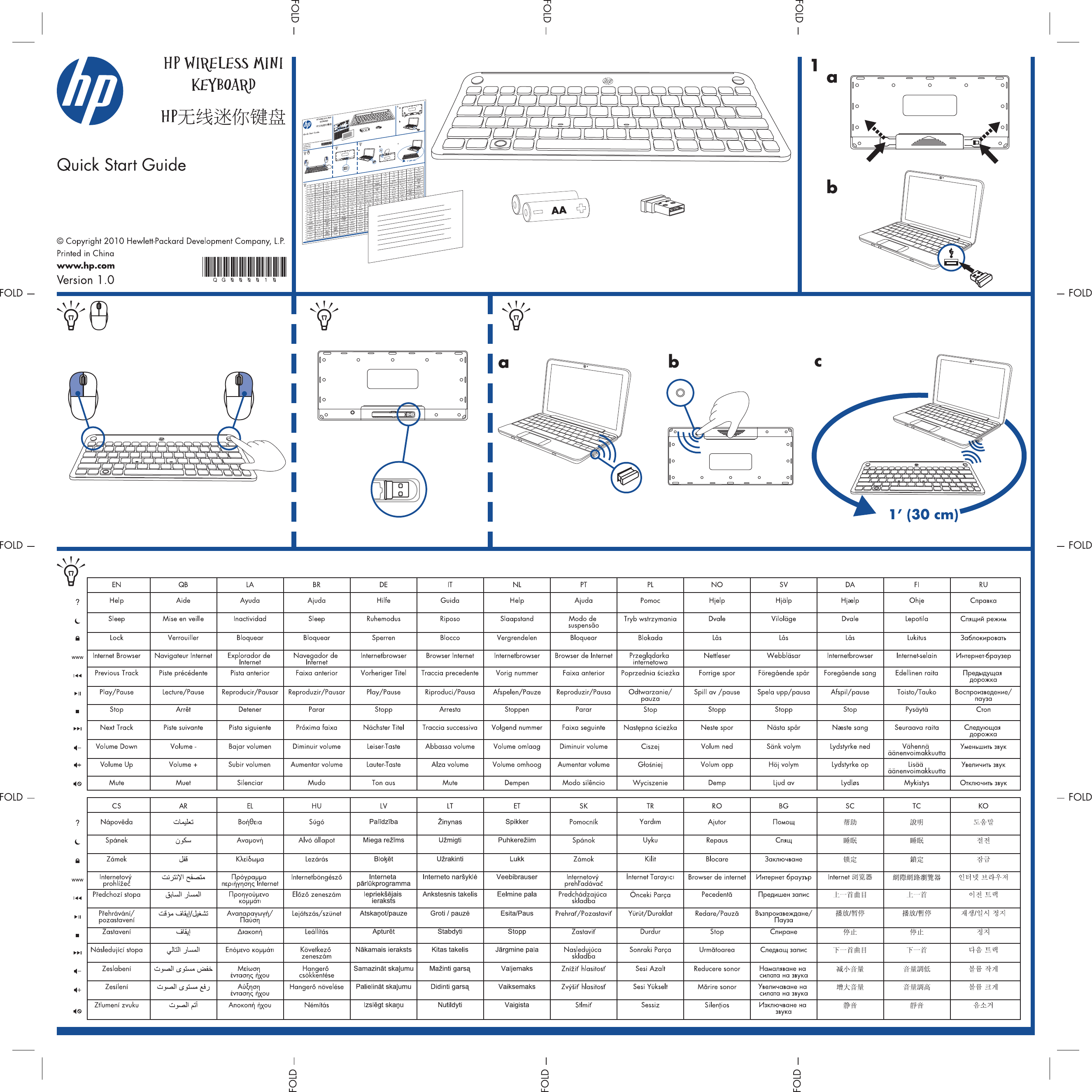Darfon Electronics U10G HP Wireless Mini Keyboard User Manual XB387AA XXX QSG v1 0 Front outlines eps