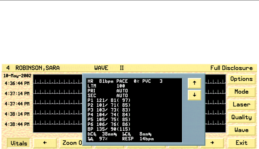 Press the Vitals buttons to display the patient’s vital statistics, as well as the primary