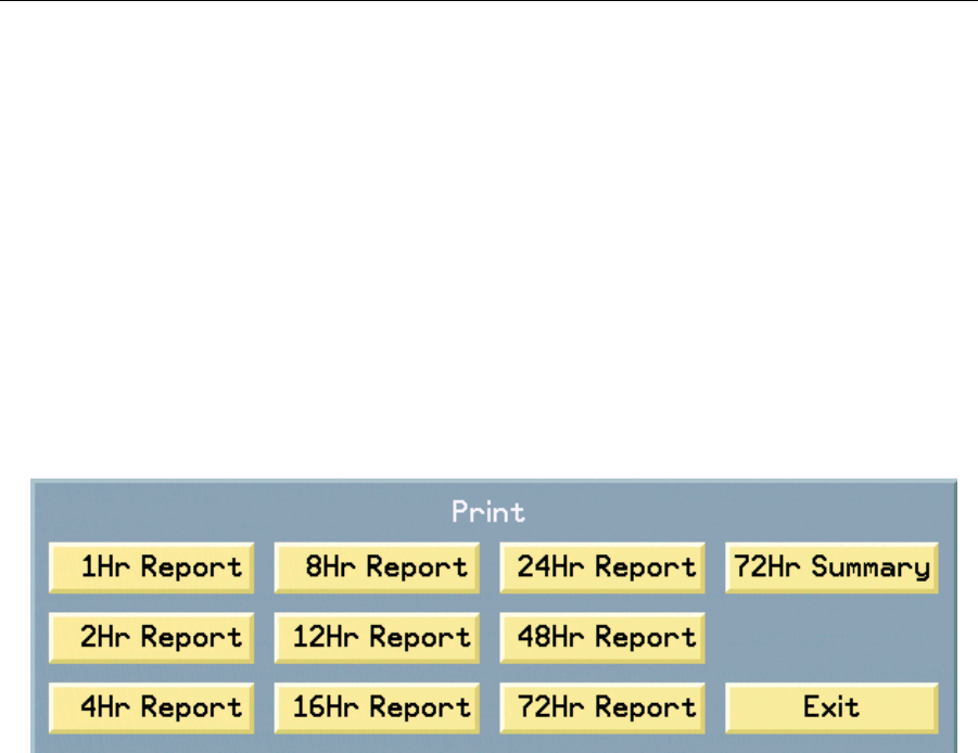 The 8 hour report prints the currently displayed hour and previous 7 hours of disclo-
