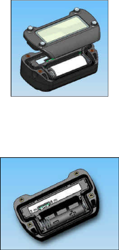 2. To access the battery compartment, loosen the four Phillips head machine screws that hold the