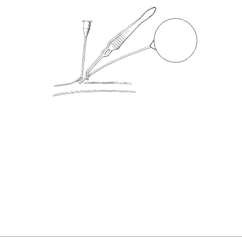 A hollow cannula and trocar or skin tunneling needle is also helpful to tunnel