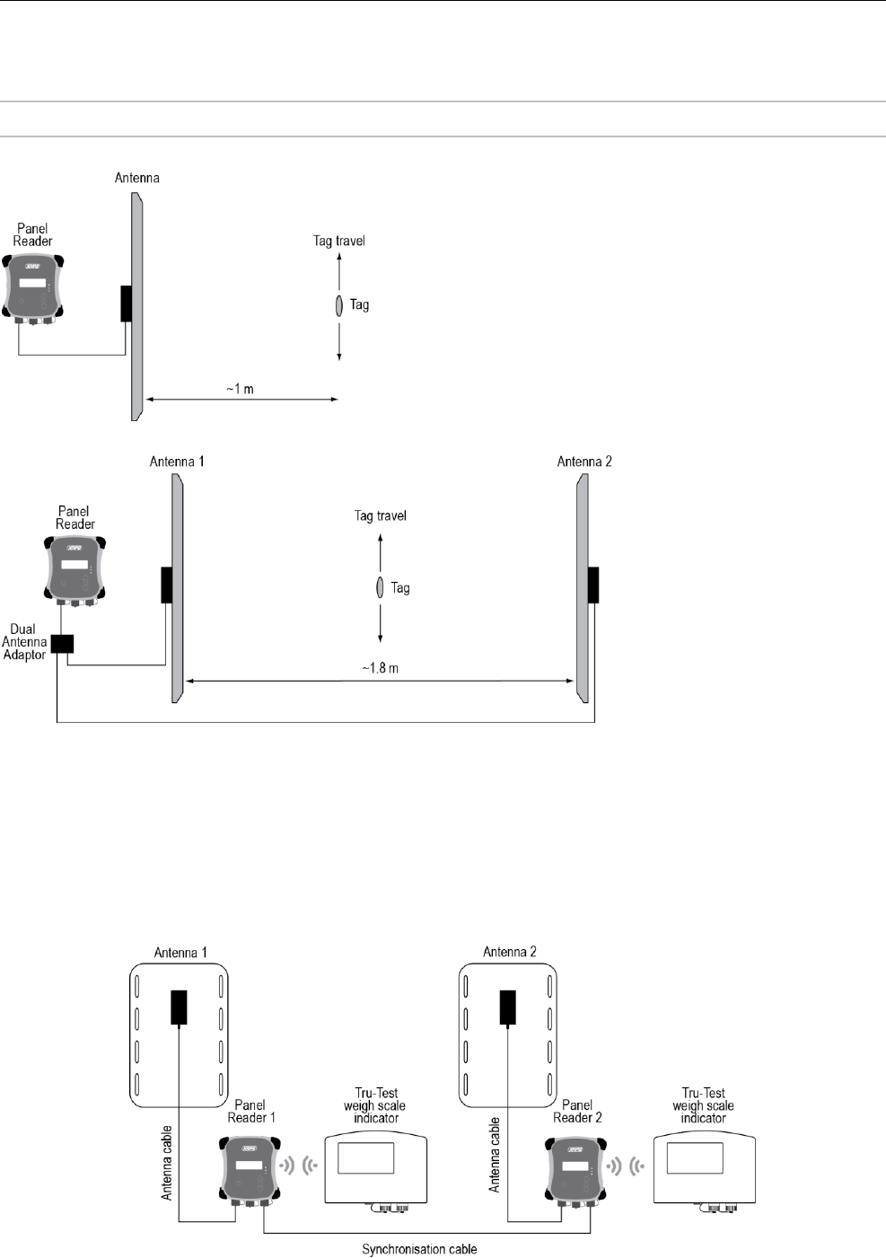 A Tru-Test Large or Small antenna is connected to the panel reader; the panel reader may be connected to a Tru-Test weigh scale indicator or to a PC.