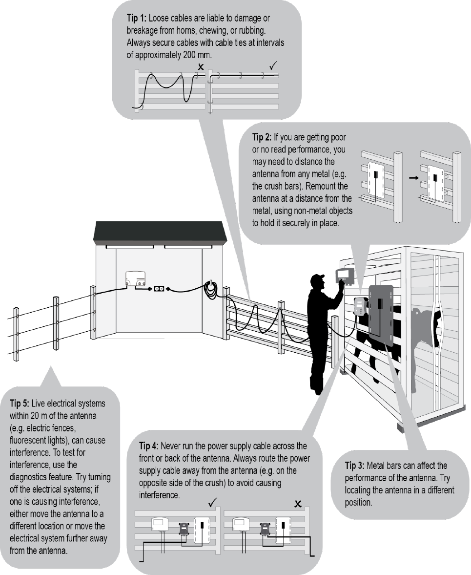 The XRP2 Panel Reader supplied (Tru-Test XRP2-1 Low Frequency Electronic ID (EID) Reader) has been approved for use only with approved external antennas described in this manual; use of