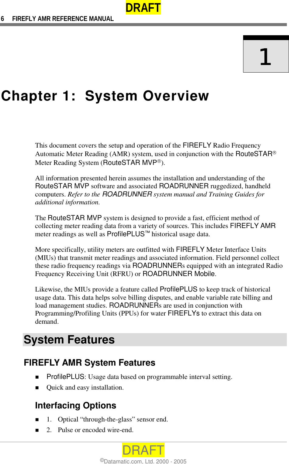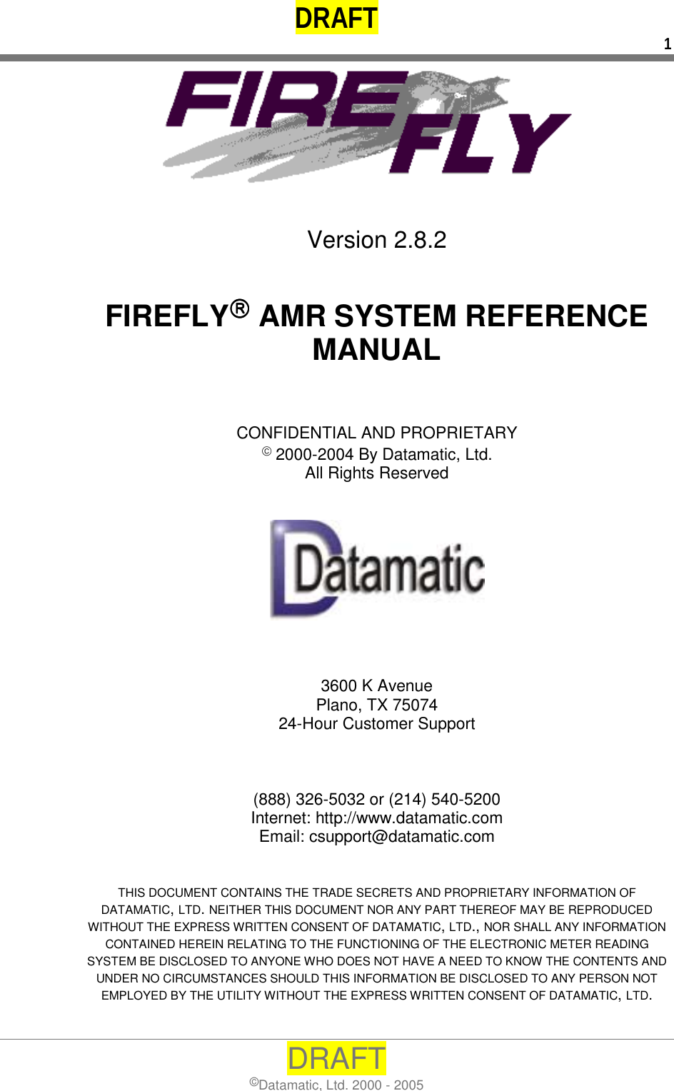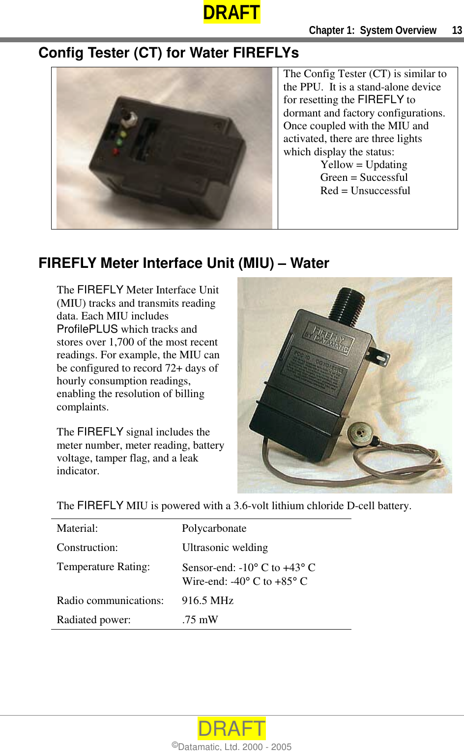 Datamatic, Ltd WATER FIREFLY TRANSMITTER FIREFLY AMR REFERENCE MANUAL