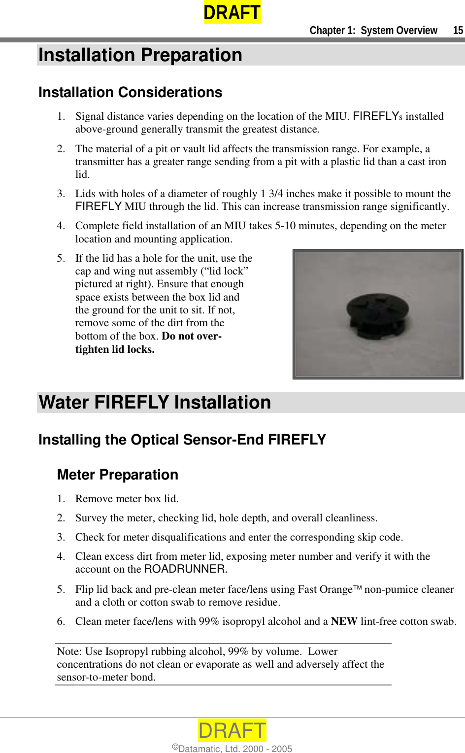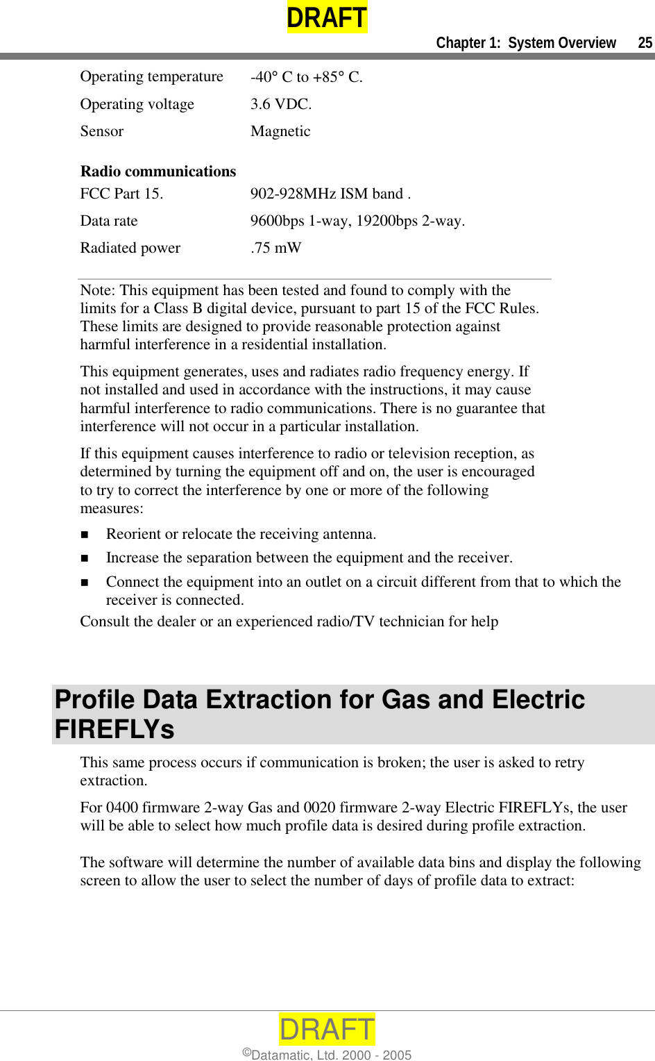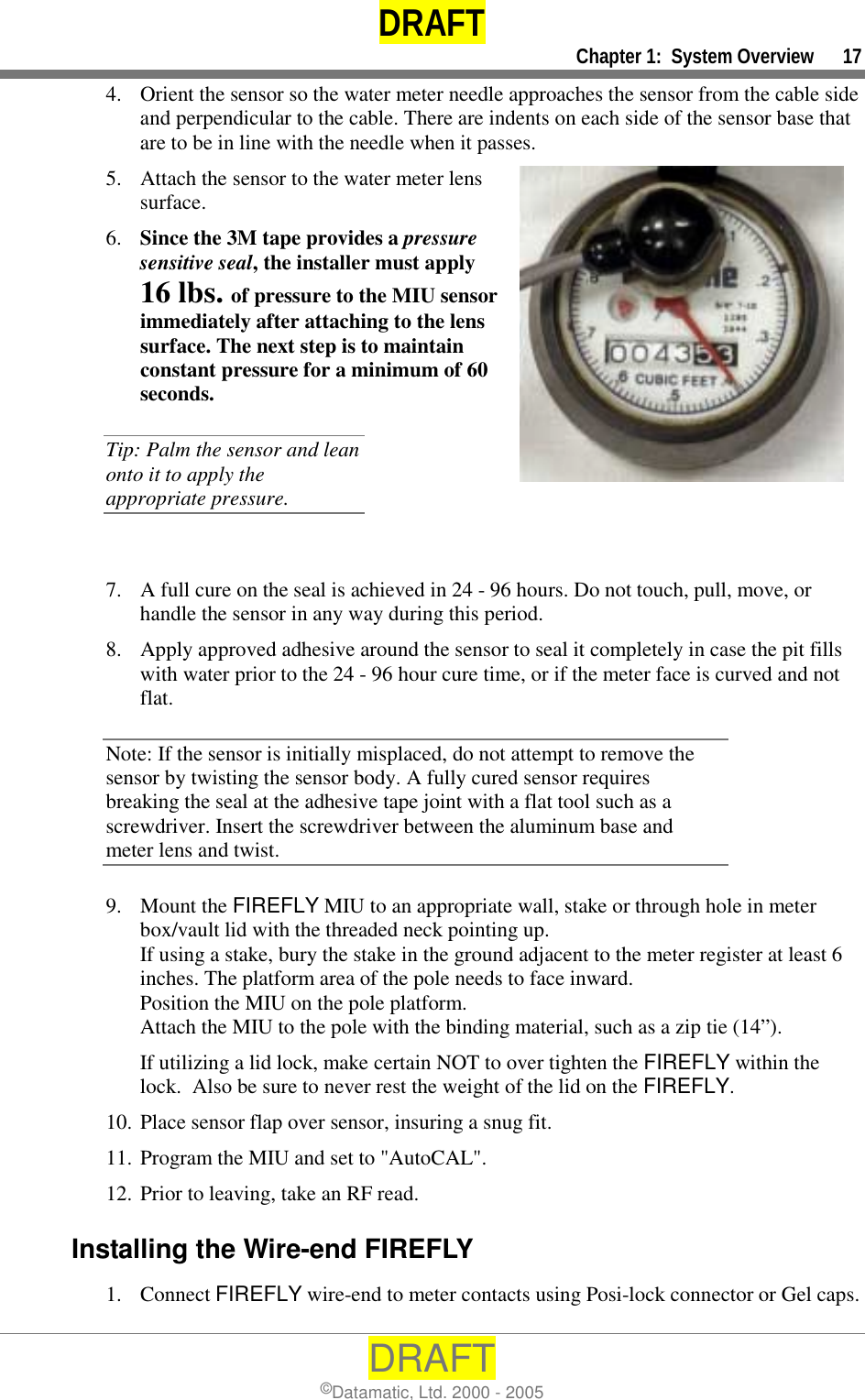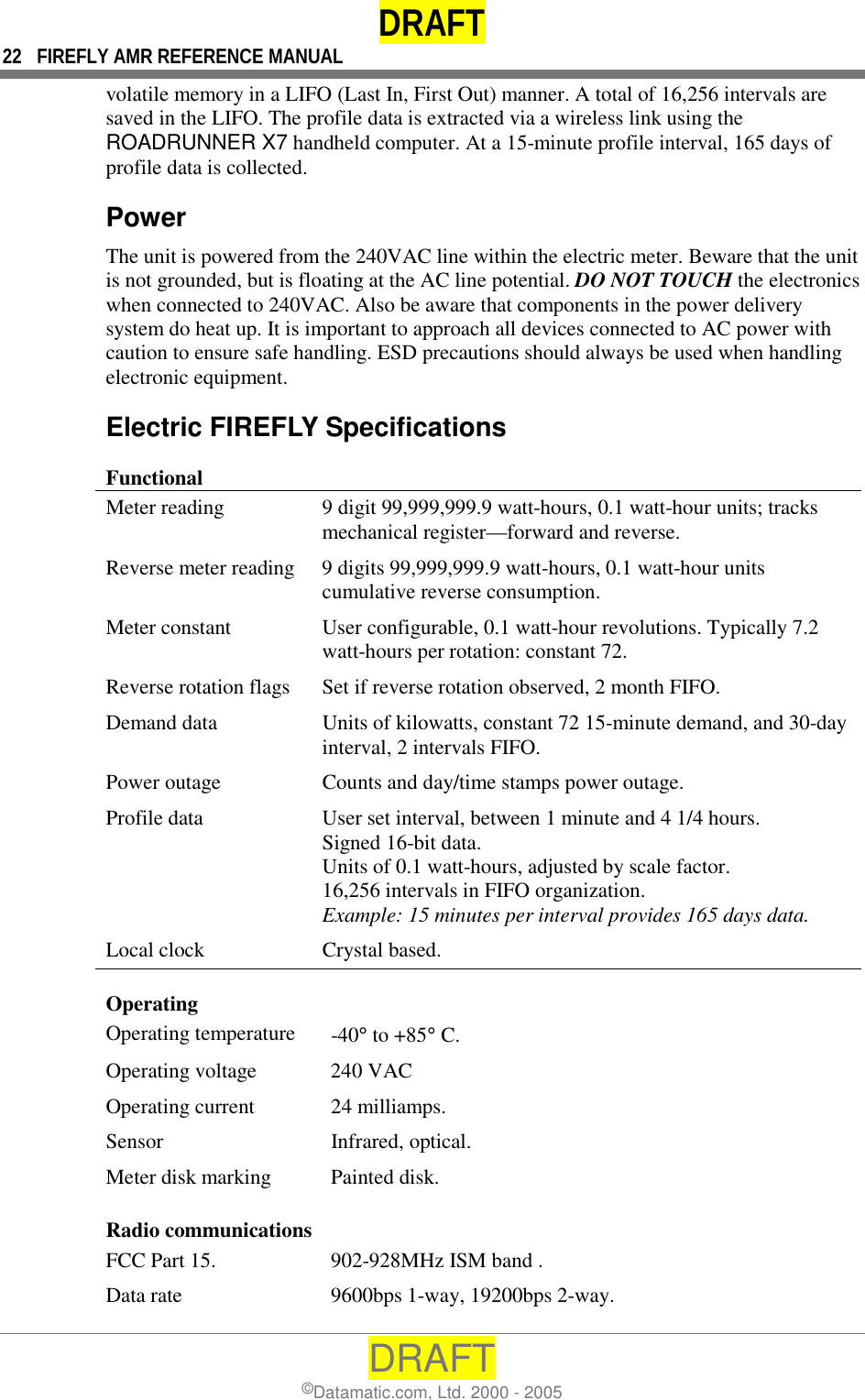 Datamatic, Ltd WATER FIREFLY TRANSMITTER FIREFLY AMR REFERENCE MANUAL