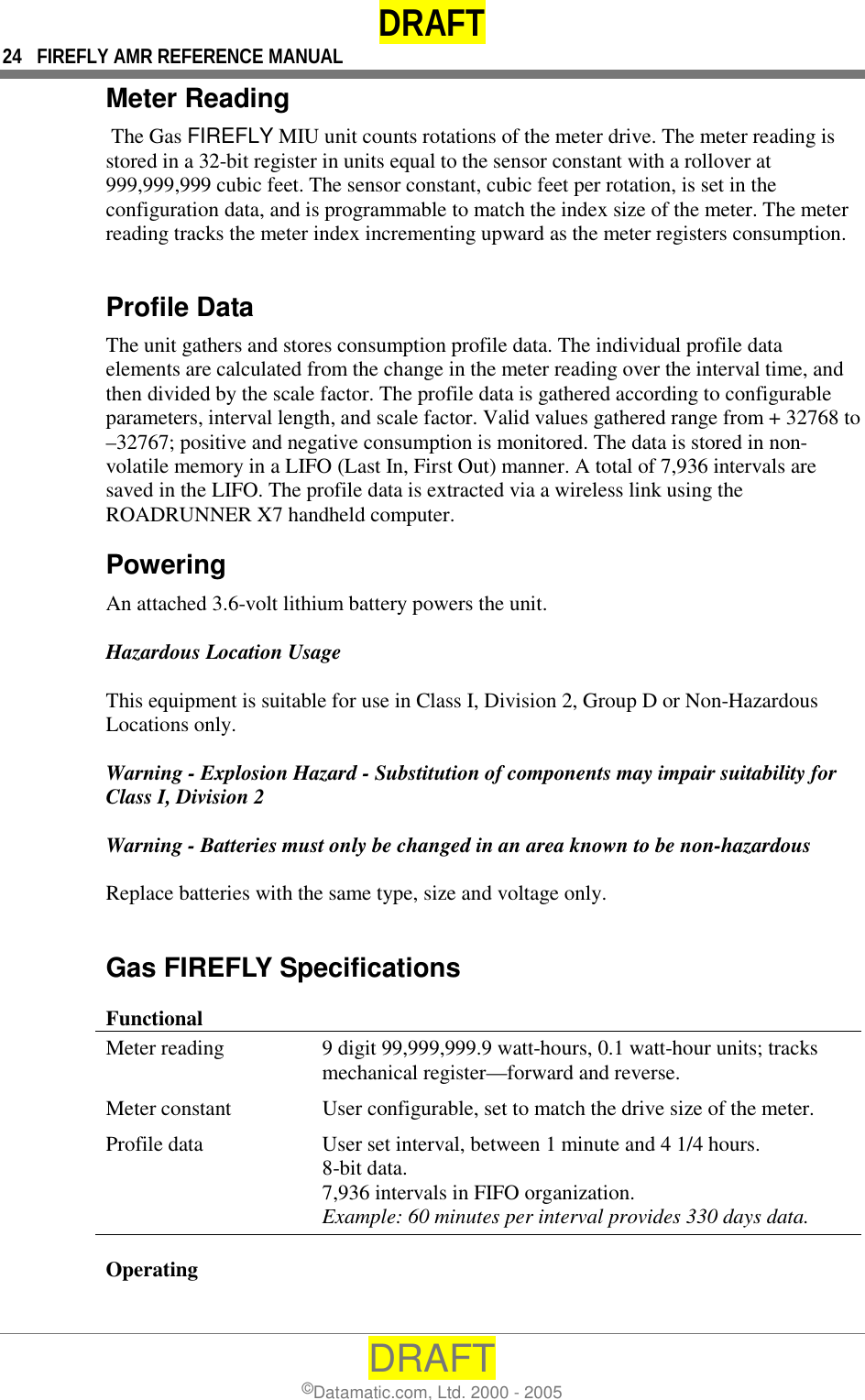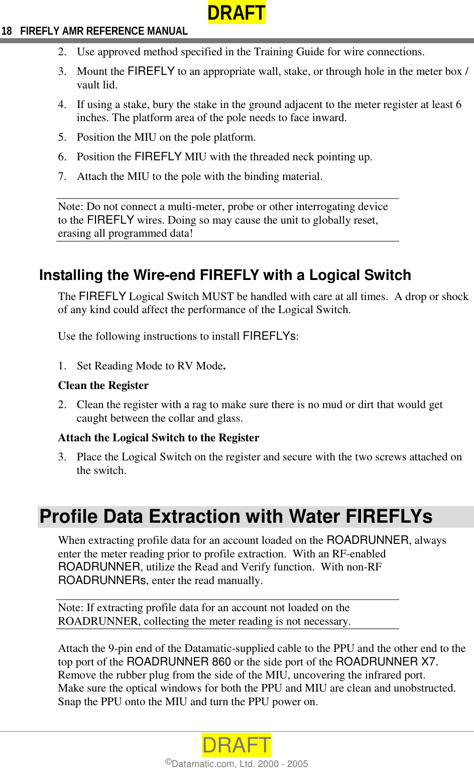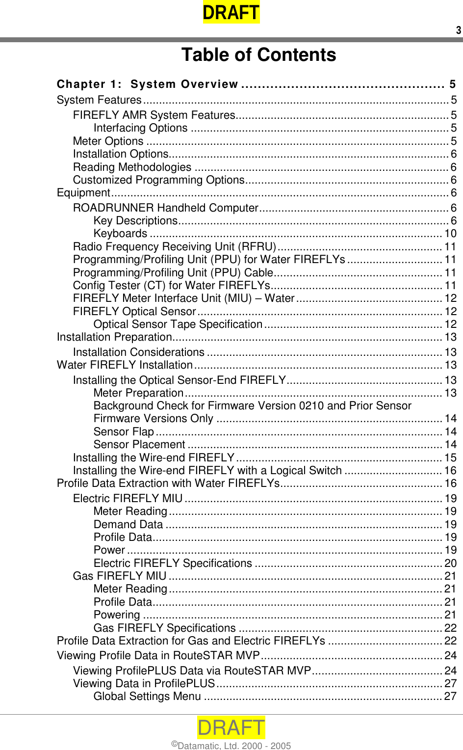 Datamatic D3000 WATER FIREFLY TRANSMITTER User Manual FIREFLY AMR REFERENCE MANUAL