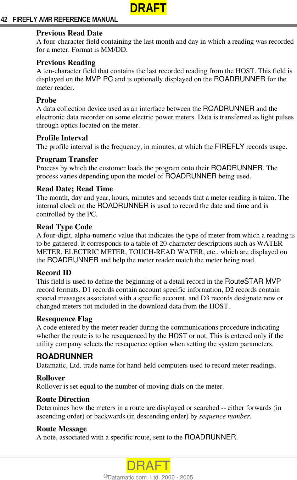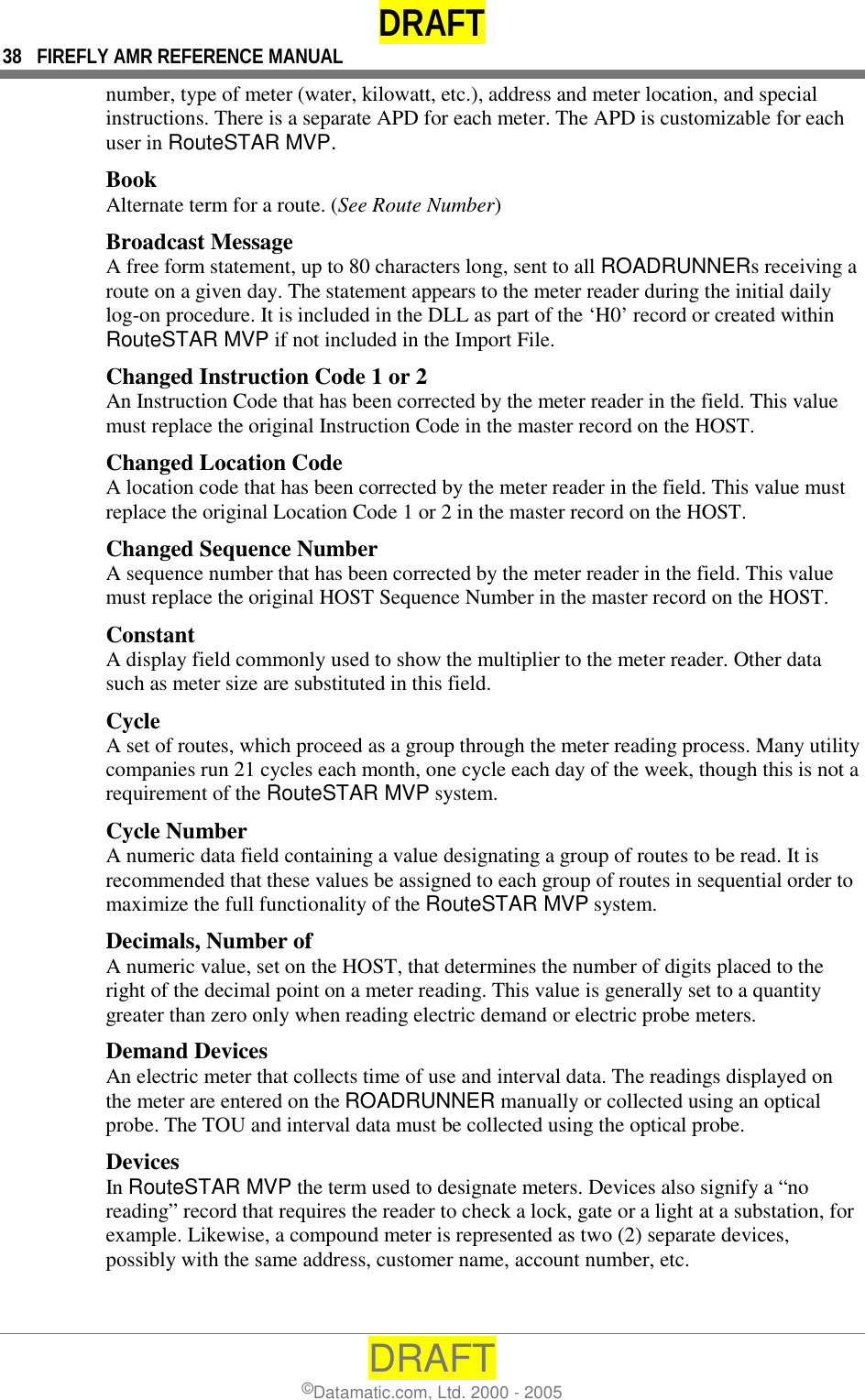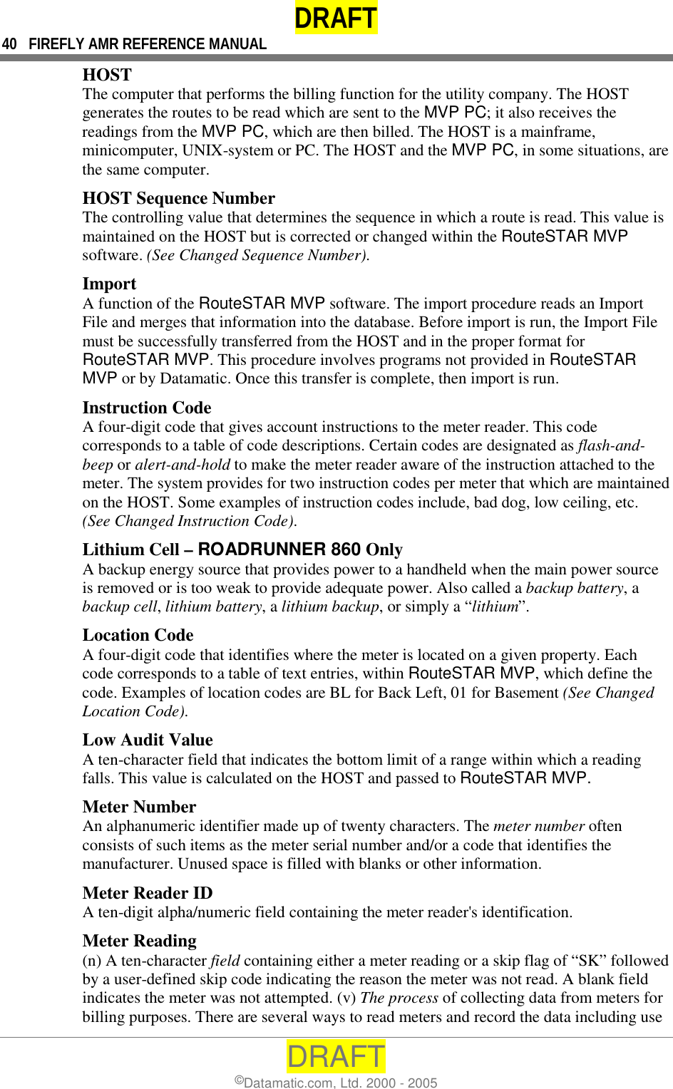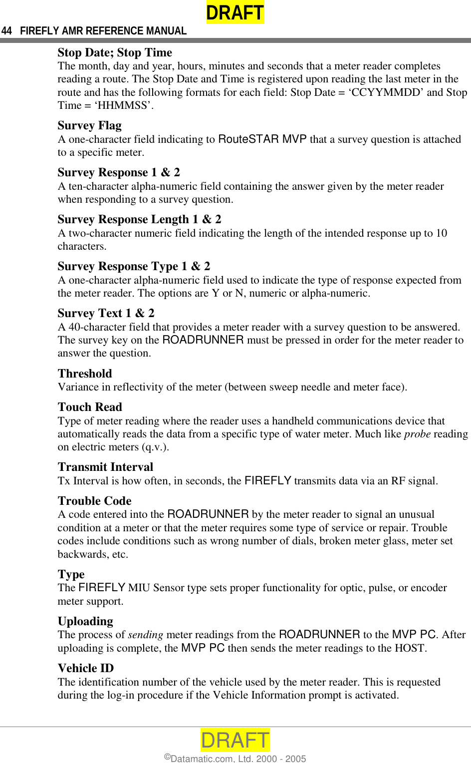 Datamatic D3000 WATER FIREFLY TRANSMITTER User Manual FIREFLY AMR REFERENCE MANUAL