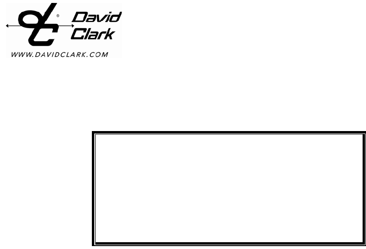 Changes and Modifications not expressly approved by DAVID CLARK COMPANY INC. can void your authority to