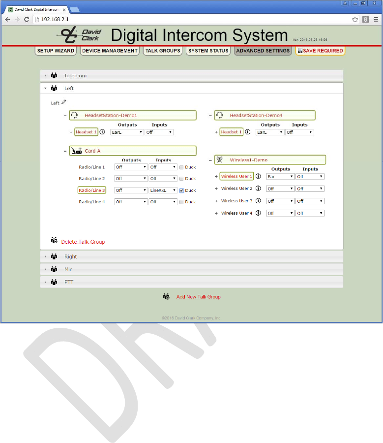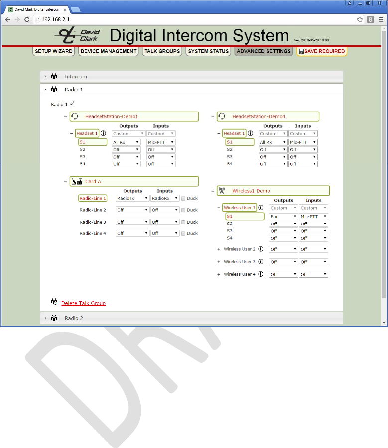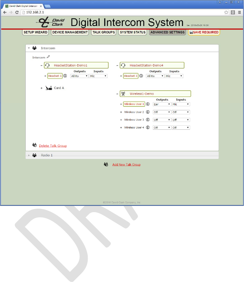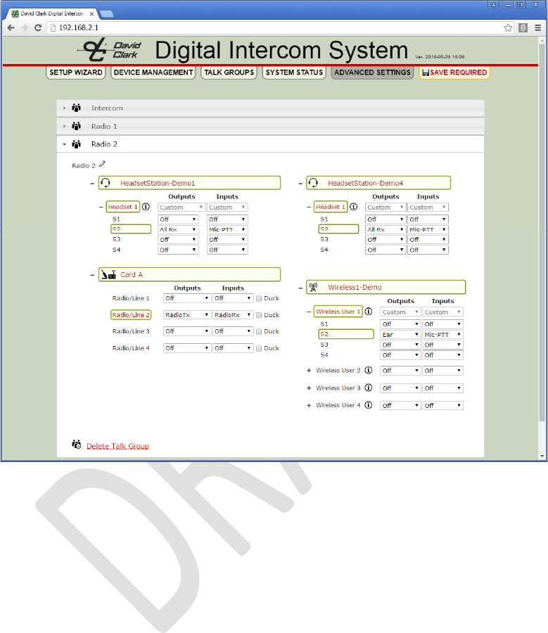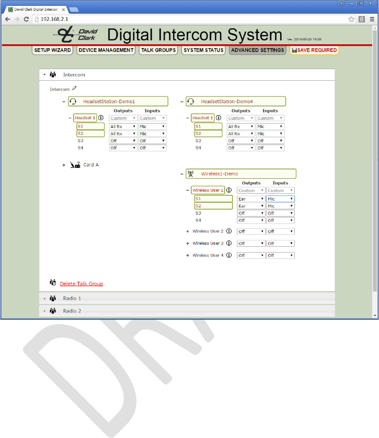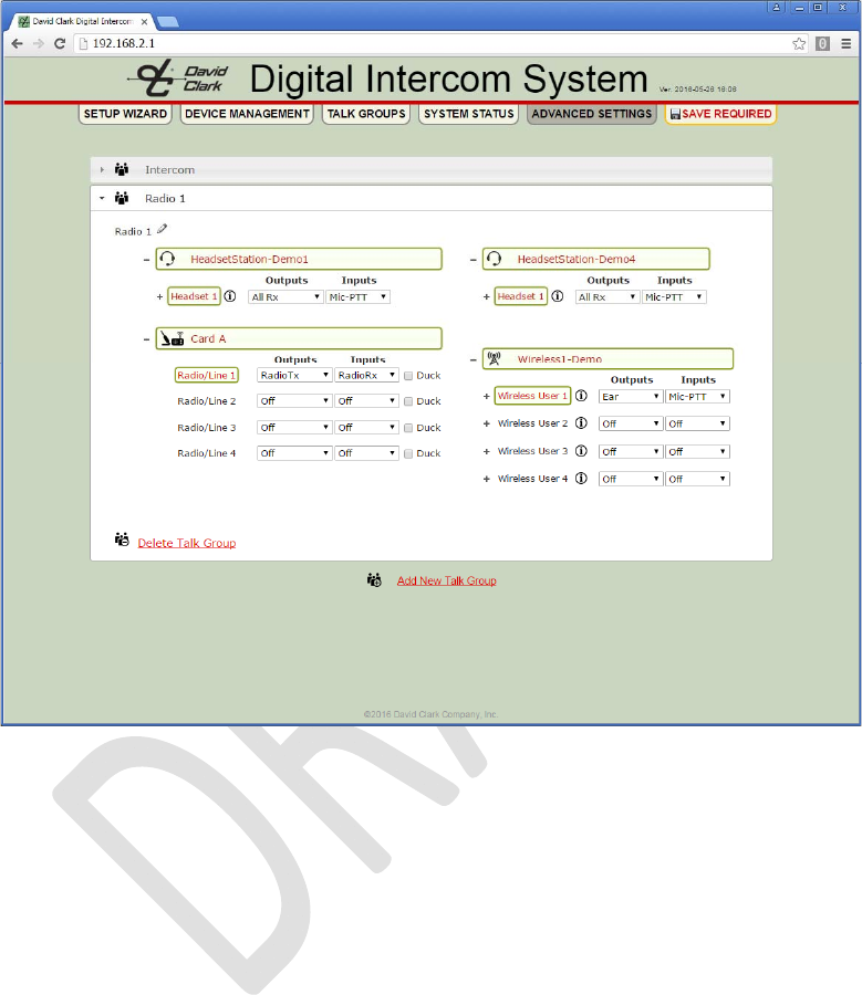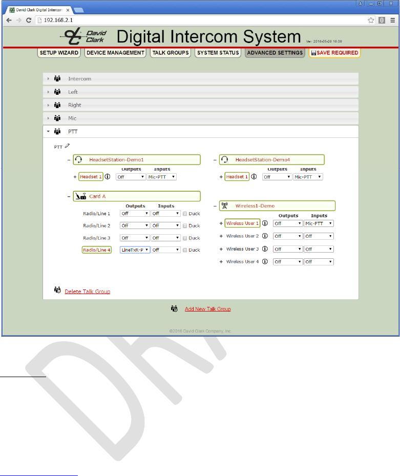 selections. Via web-based programming, each user can have unique settings configured in “talk groups”.