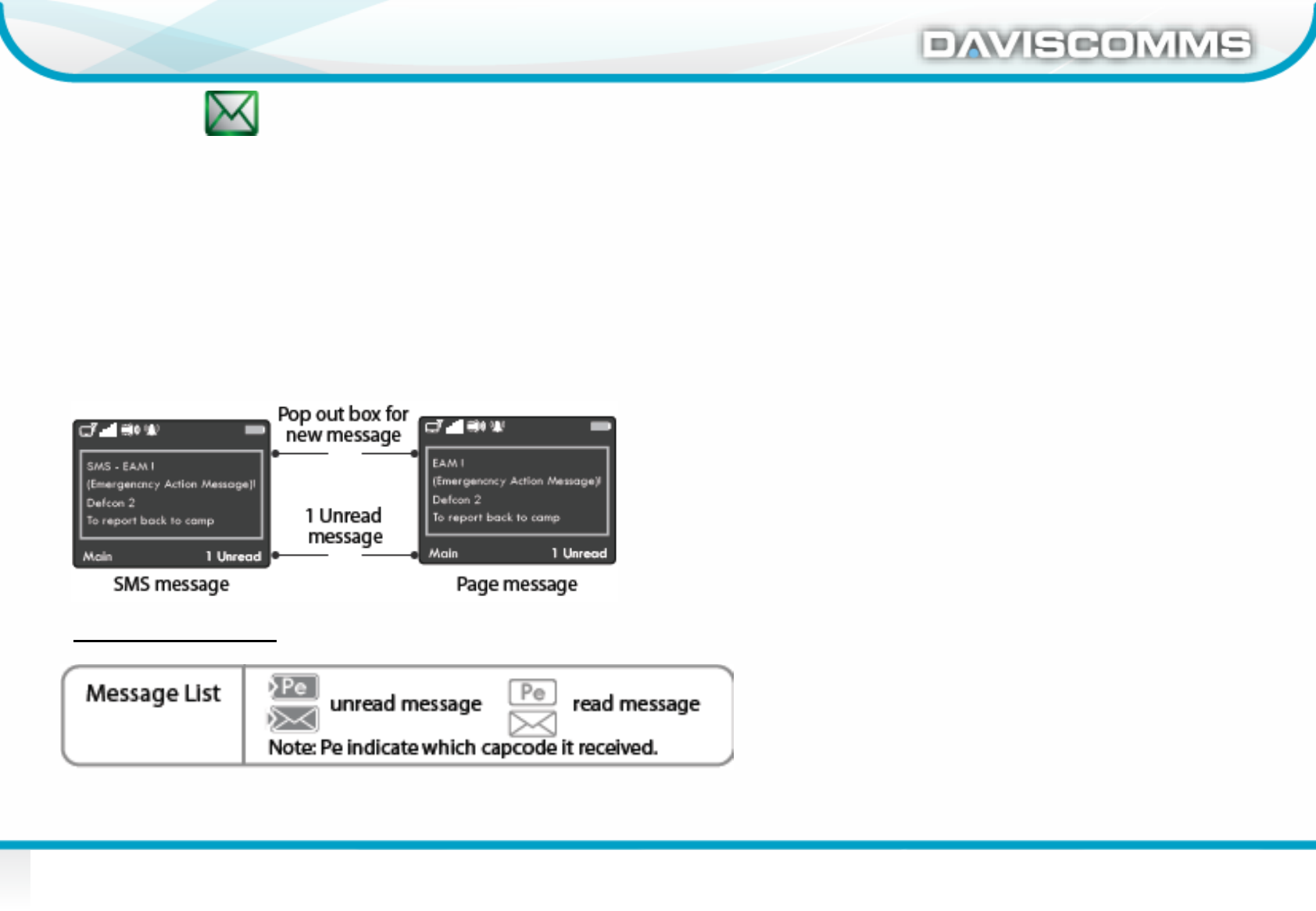 is counted as an unread message. If new page/sms messages come in successfully, the latest message will be