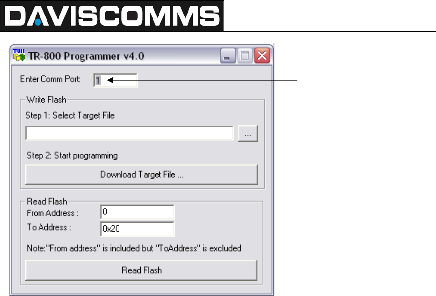 Step 1: Enter your COM Port number. The default value is 1. The programmer will set the COM port