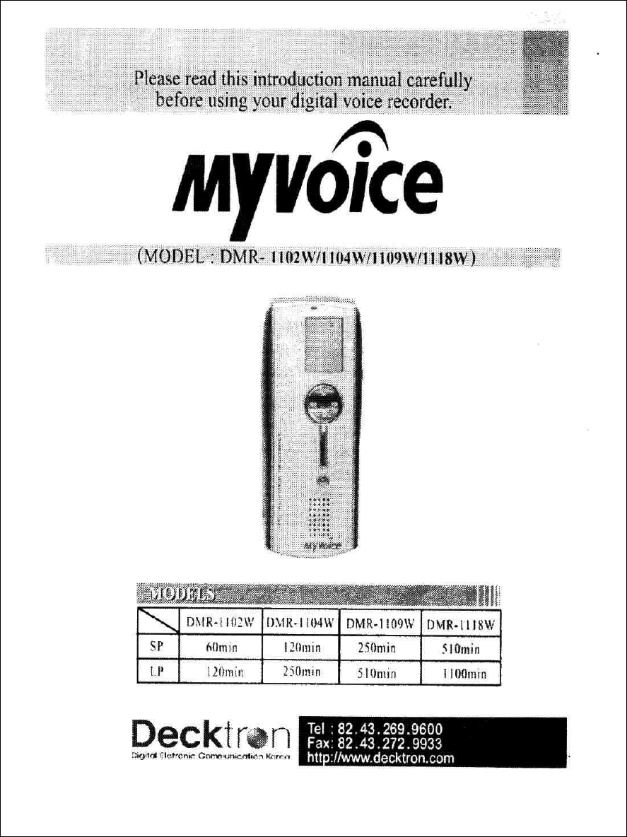 Decktron DMR1109W Digital Voice Recorder User Manual