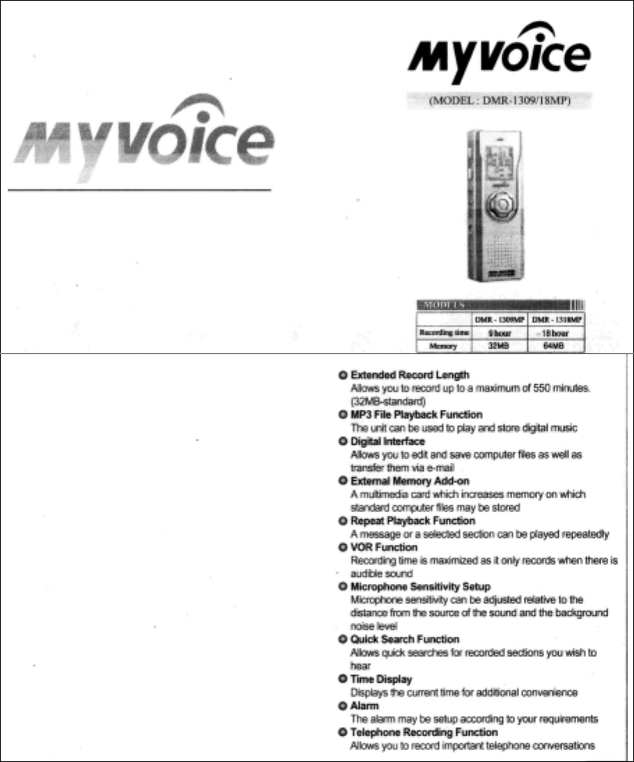 Decktron DMR1318MP Digital Voice Recorder w/MP3 User Manual 1 of 2