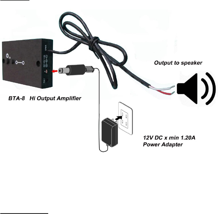 1/ Connect power adapter to BTA-8 Amplifier using DC input jack on