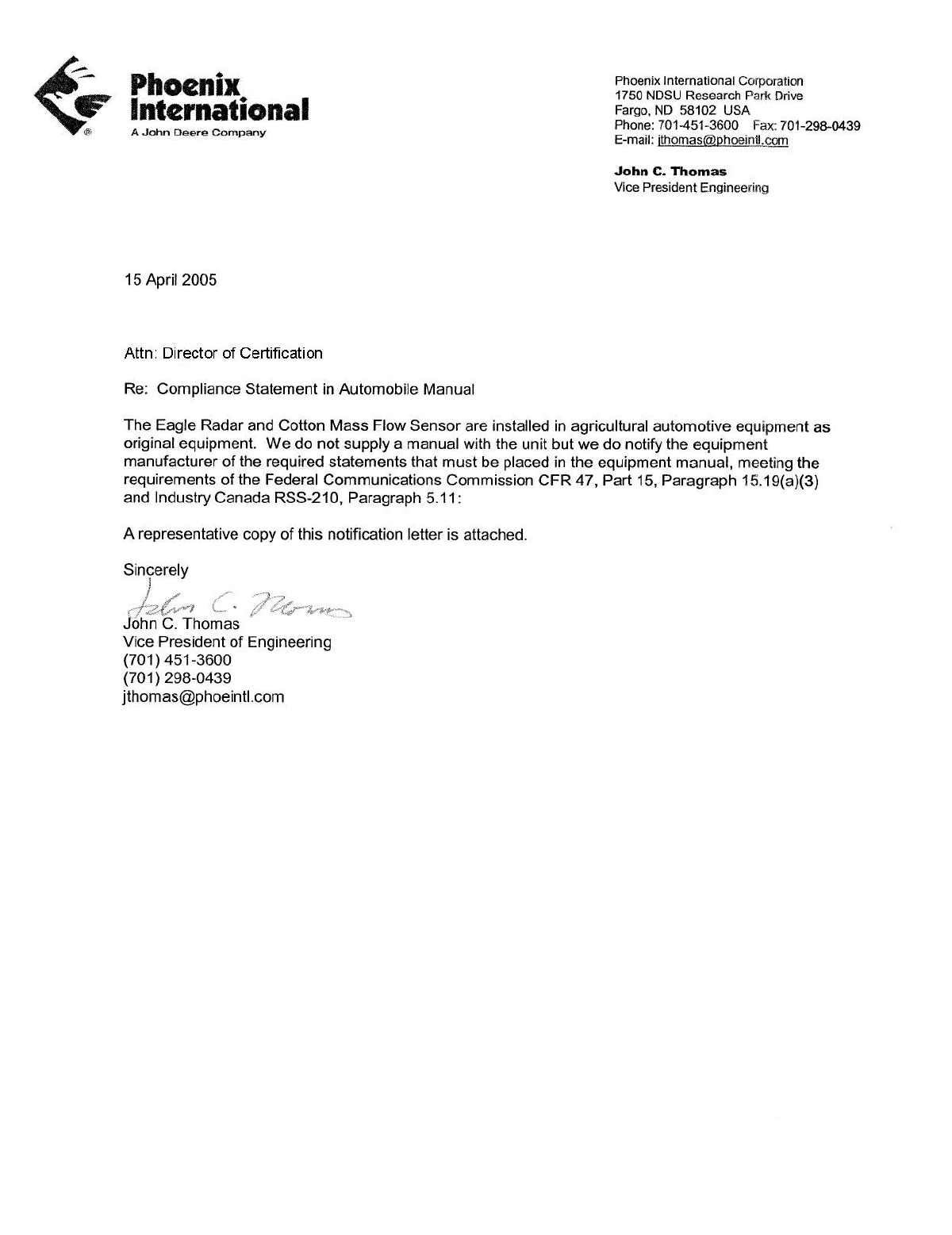 Phoenix International Corporation Doppler Effect Ground Speed Sensor Users Manual