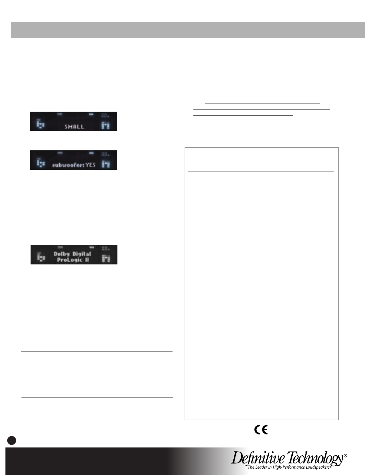 Definitive Technology, Owings Mills, Maryland, USA. 800-228-7148