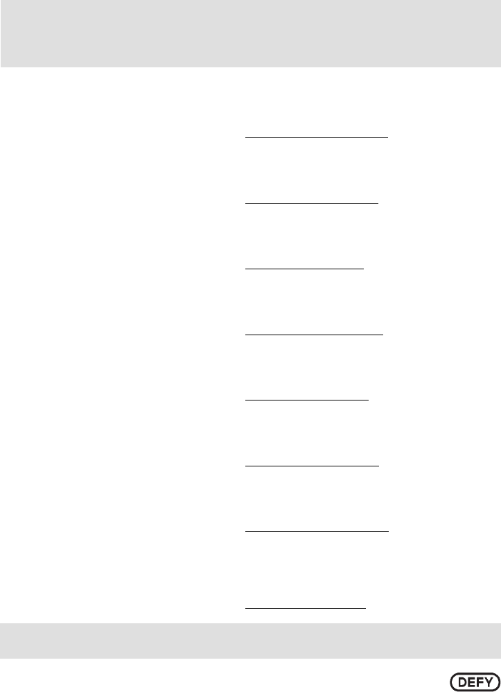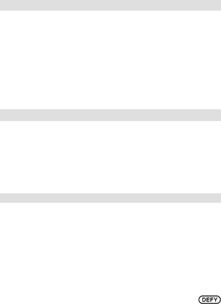 9. If it becomes necessary to replace the oven lamp, please consult a Defy Service Centre to have it replaced.