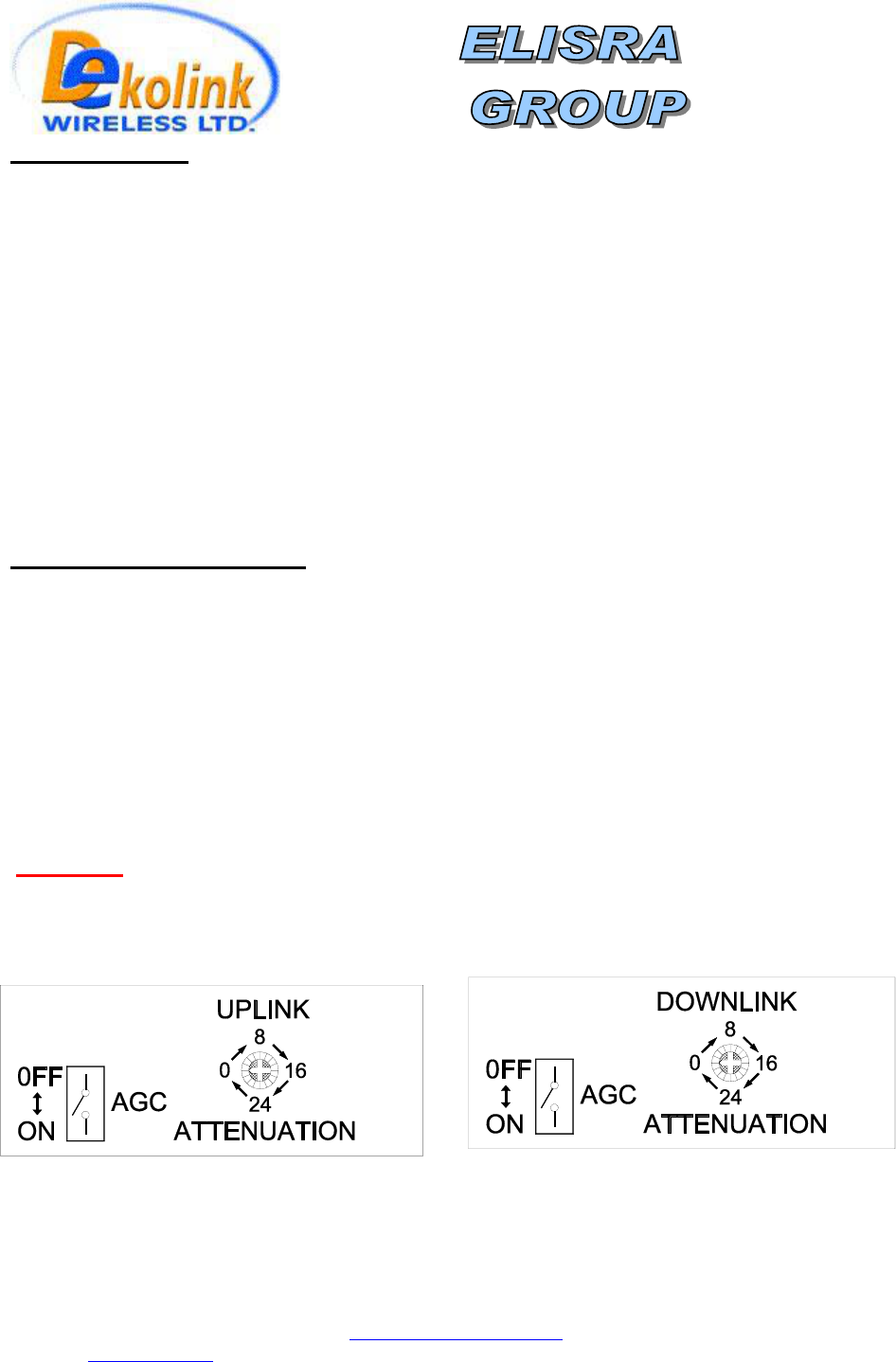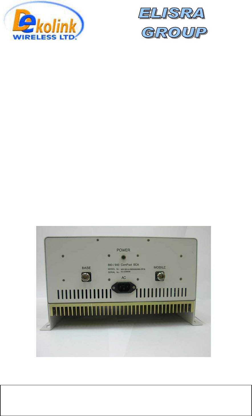 Dekolink Wireless Ltd Bi-Directional Booster INSTALLATION